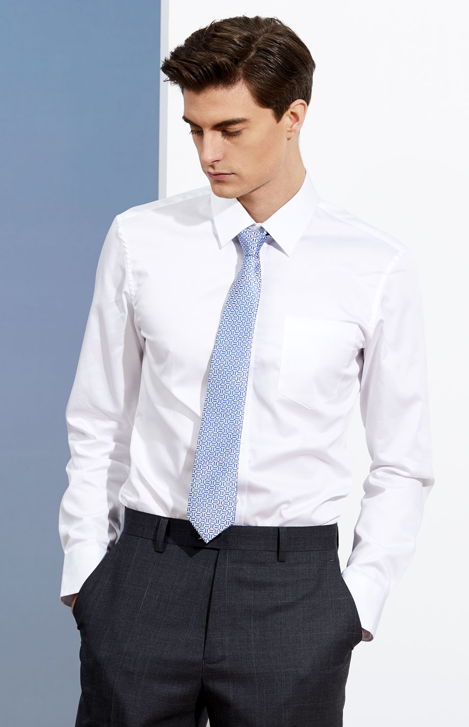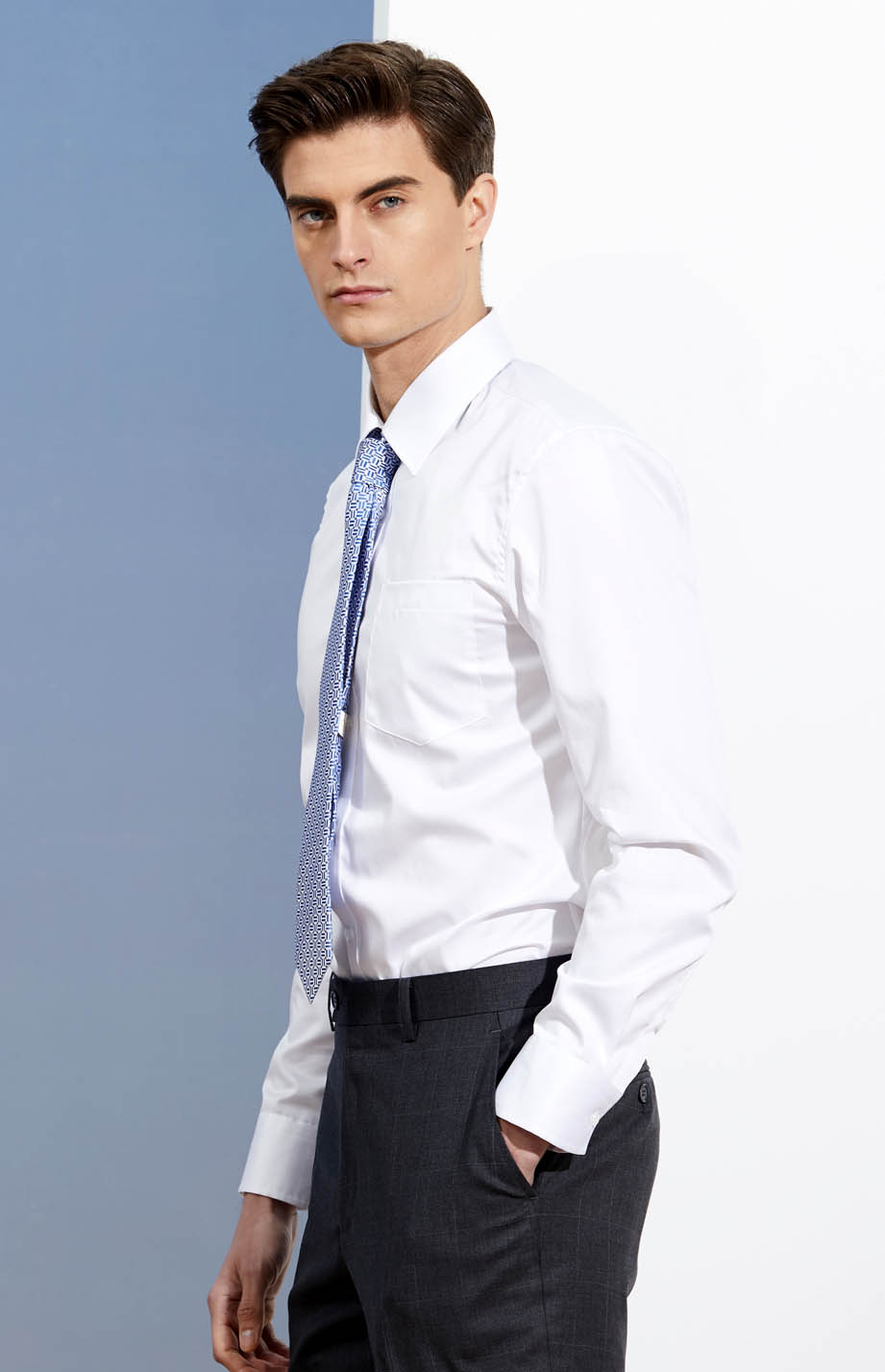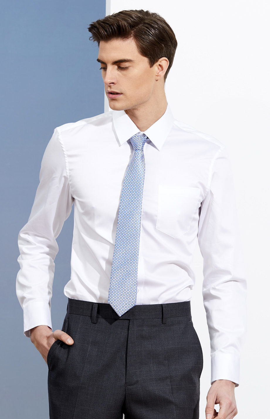| 款名: | 白色天丝棉仿丝绸春秋季商务衬衫 | |||||