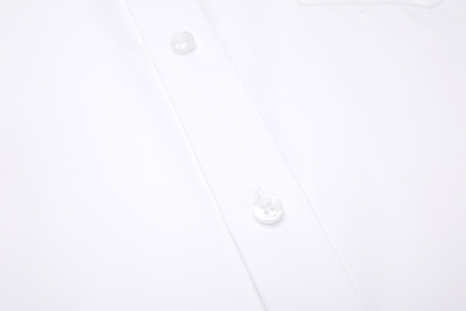 经典贴门襟设计;专用定制纽扣,精致耐用,车线精密走针,不易脱落。