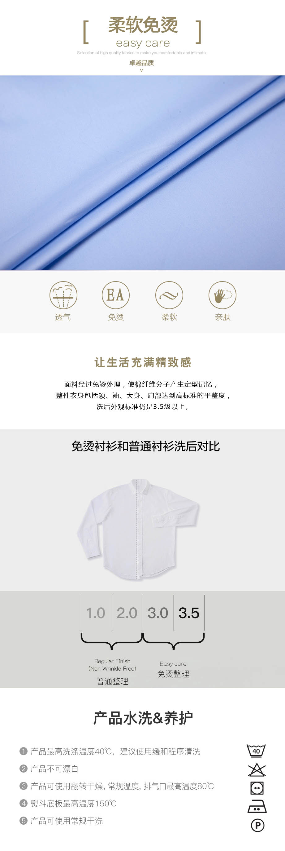 | 款名: | 浅蓝色纯棉贡缎免烫商务衬衫 | |||||