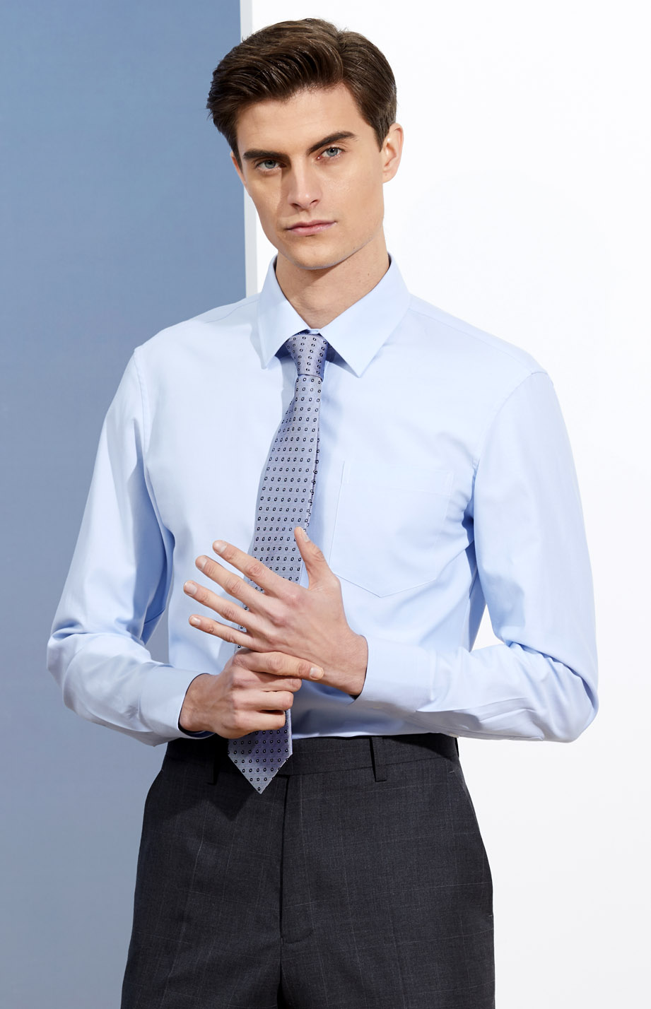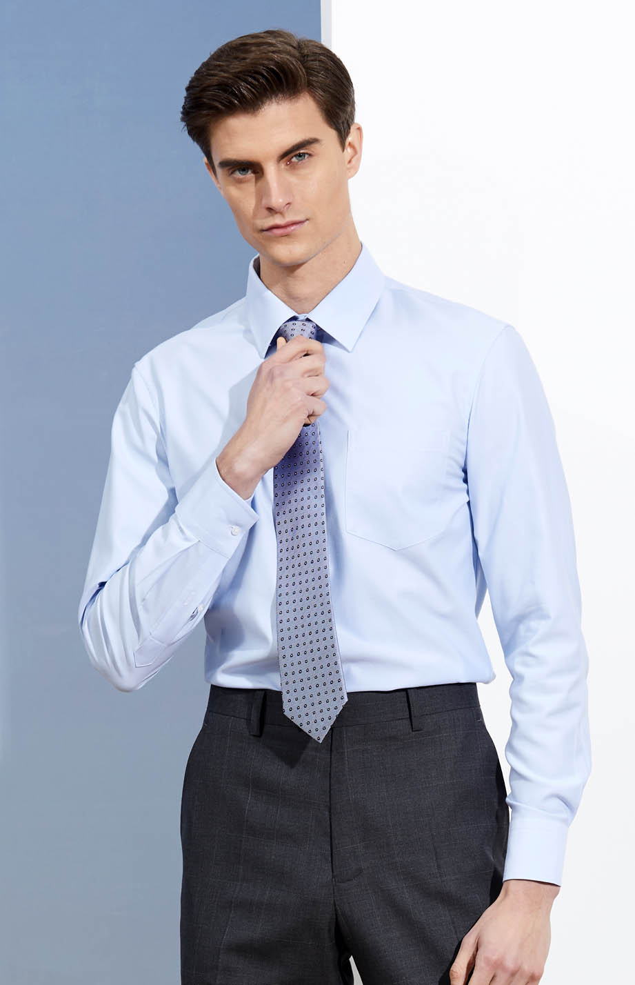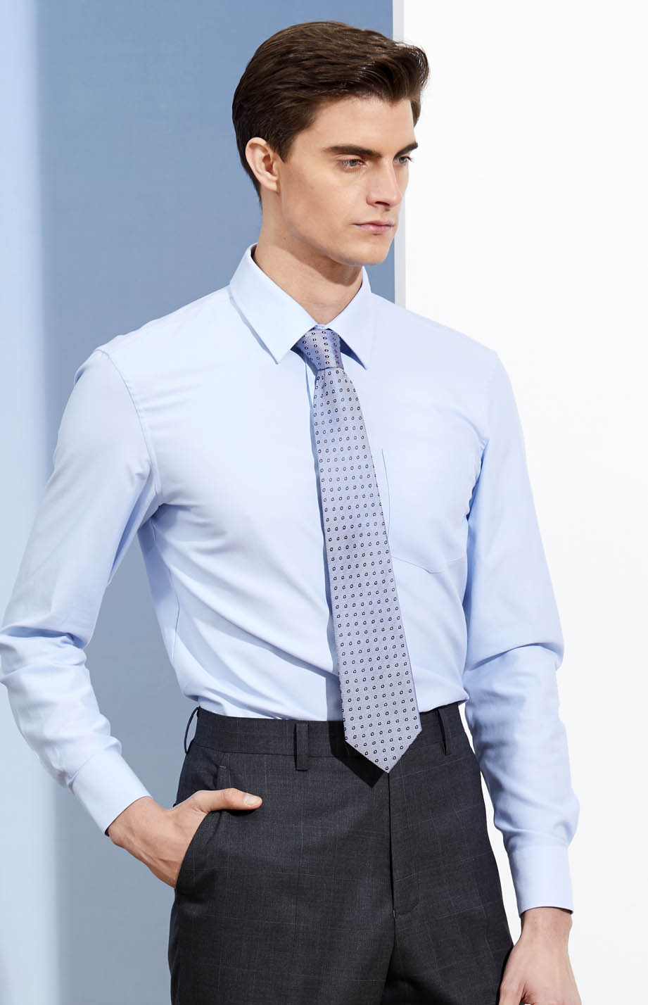 | 款名: | 浅蓝色纯棉贡缎免烫商务衬衫 | |||