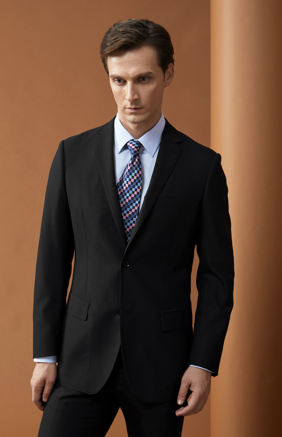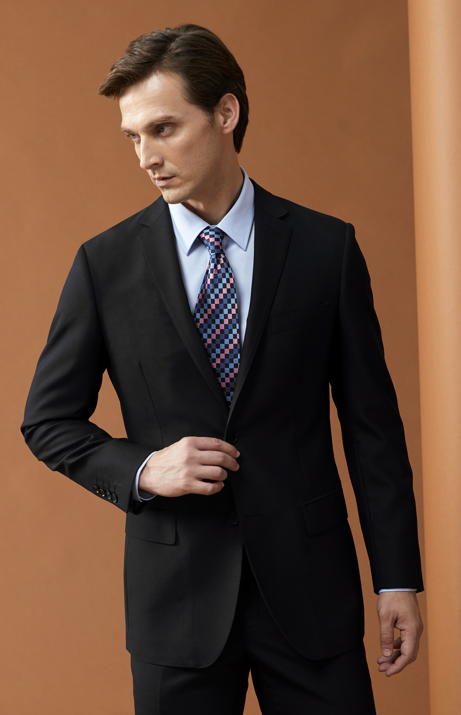 | 款名: | 黑色毛涤混纺(70%毛)商务西装上衣 | |||