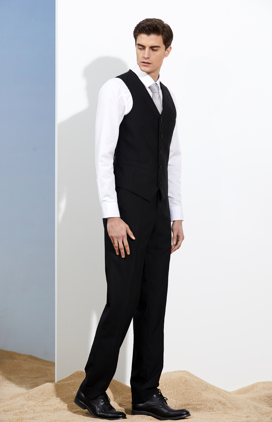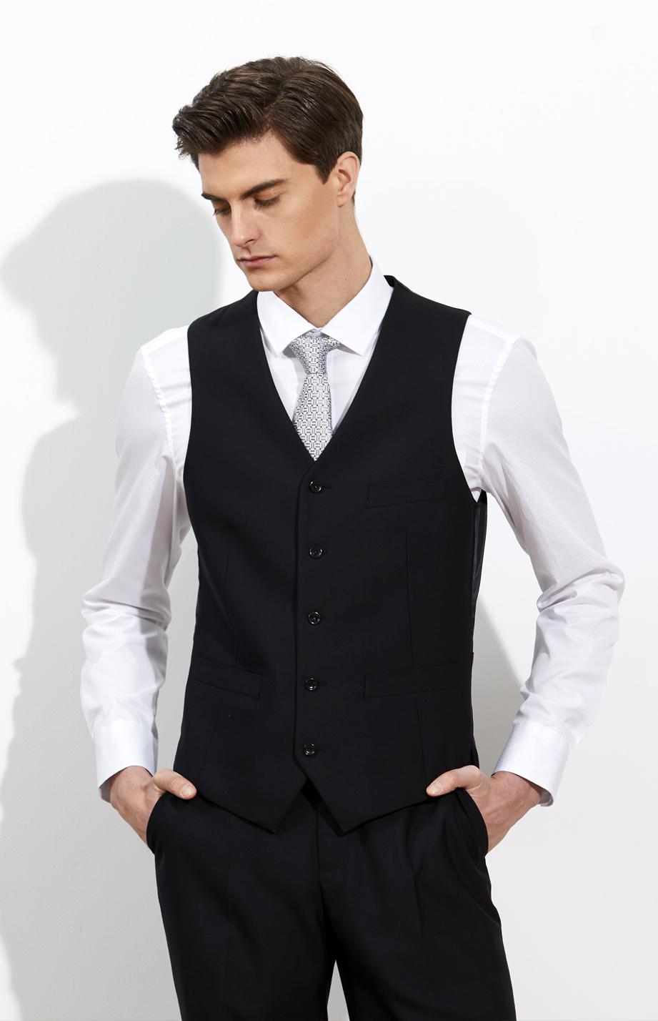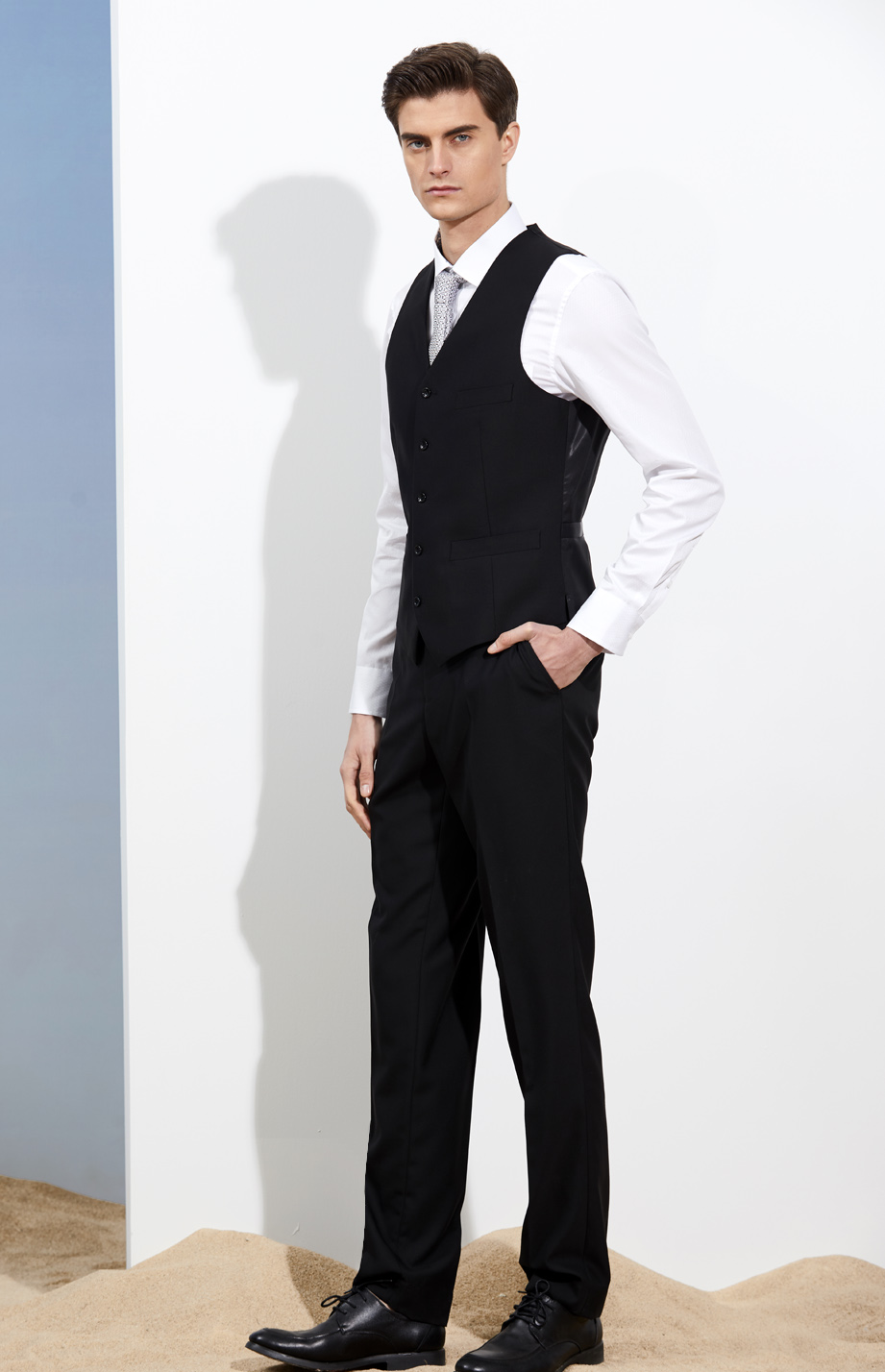 | 款名: | 黑色毛涤(70%毛)西服套装马甲 | |||