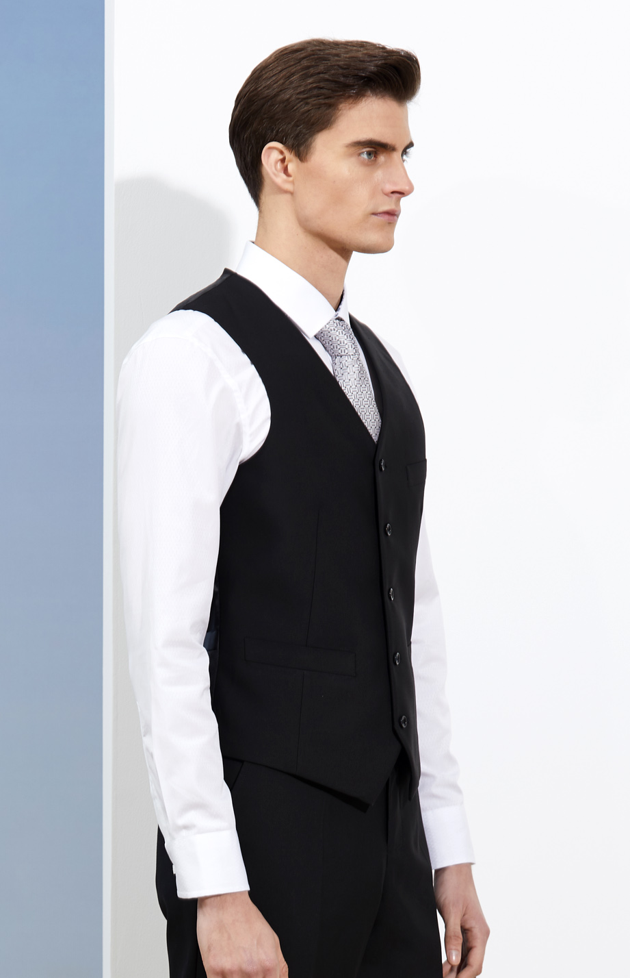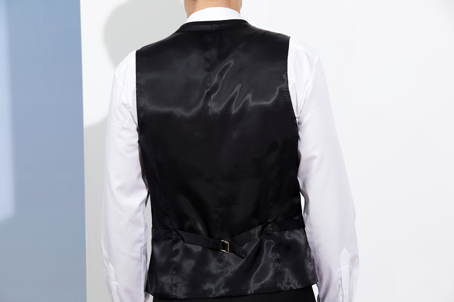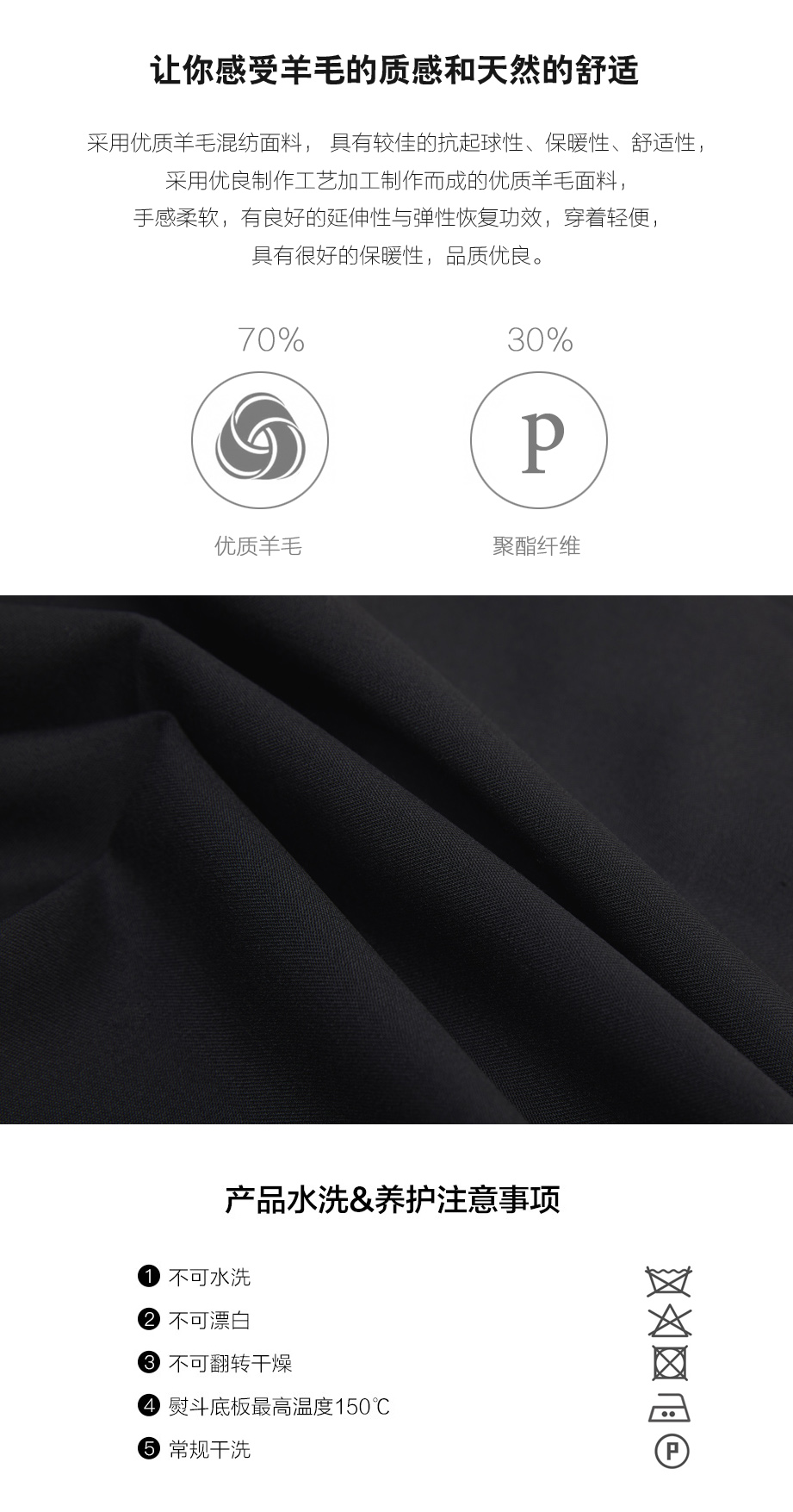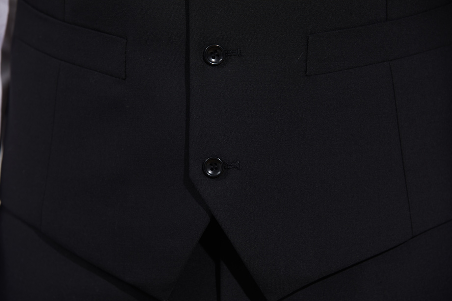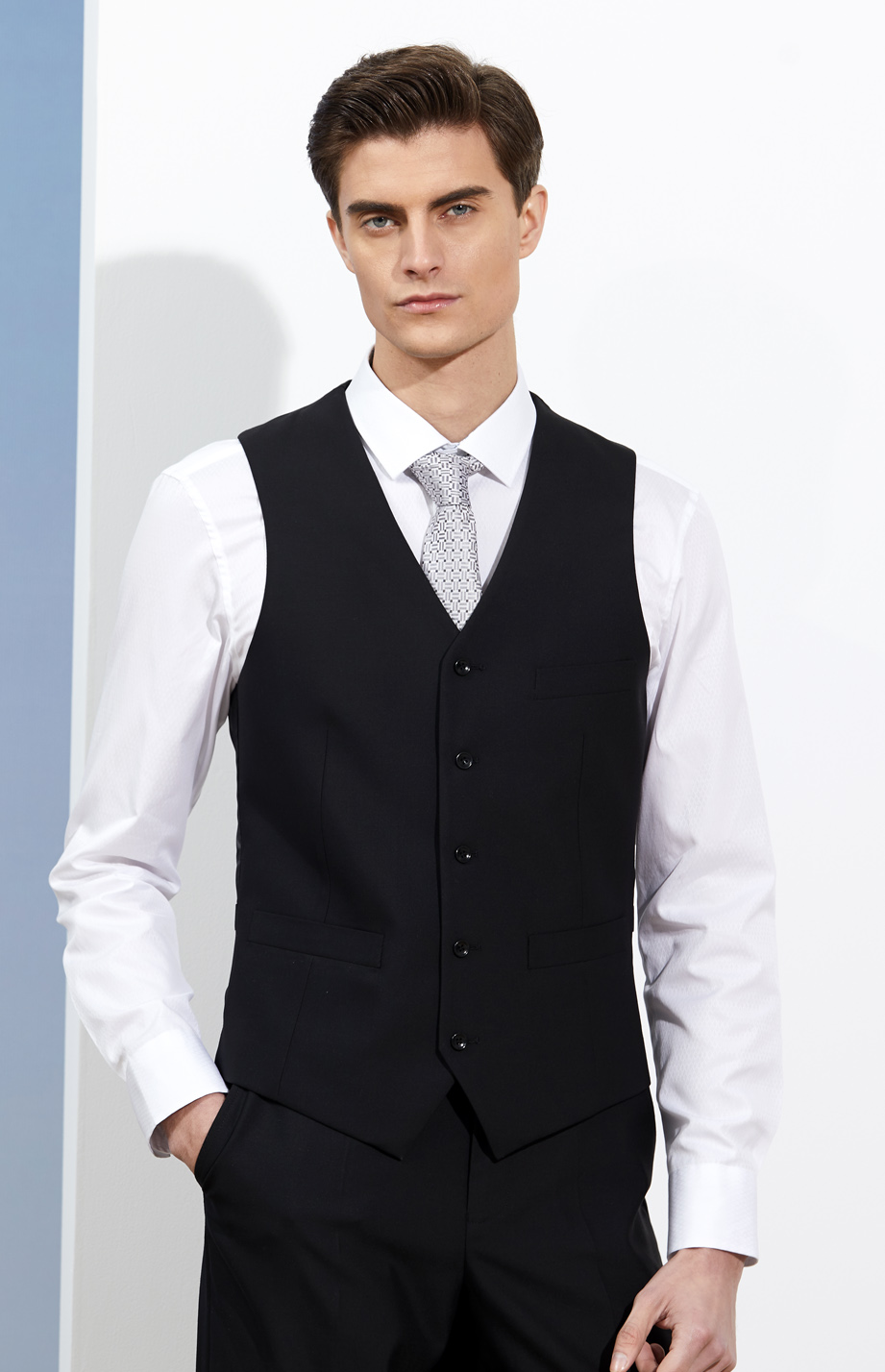 | 款名: | 黑色毛涤(70%毛)西服套装马甲 | |||