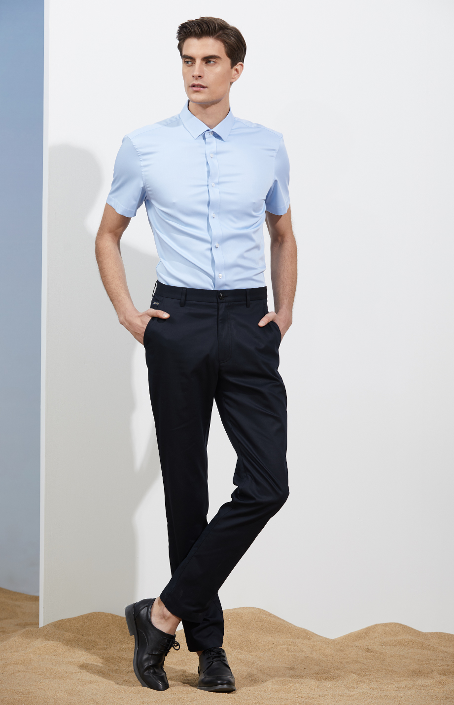 | 款名: | 浅蓝色小方领竹纤维短袖衬衫 | |||||