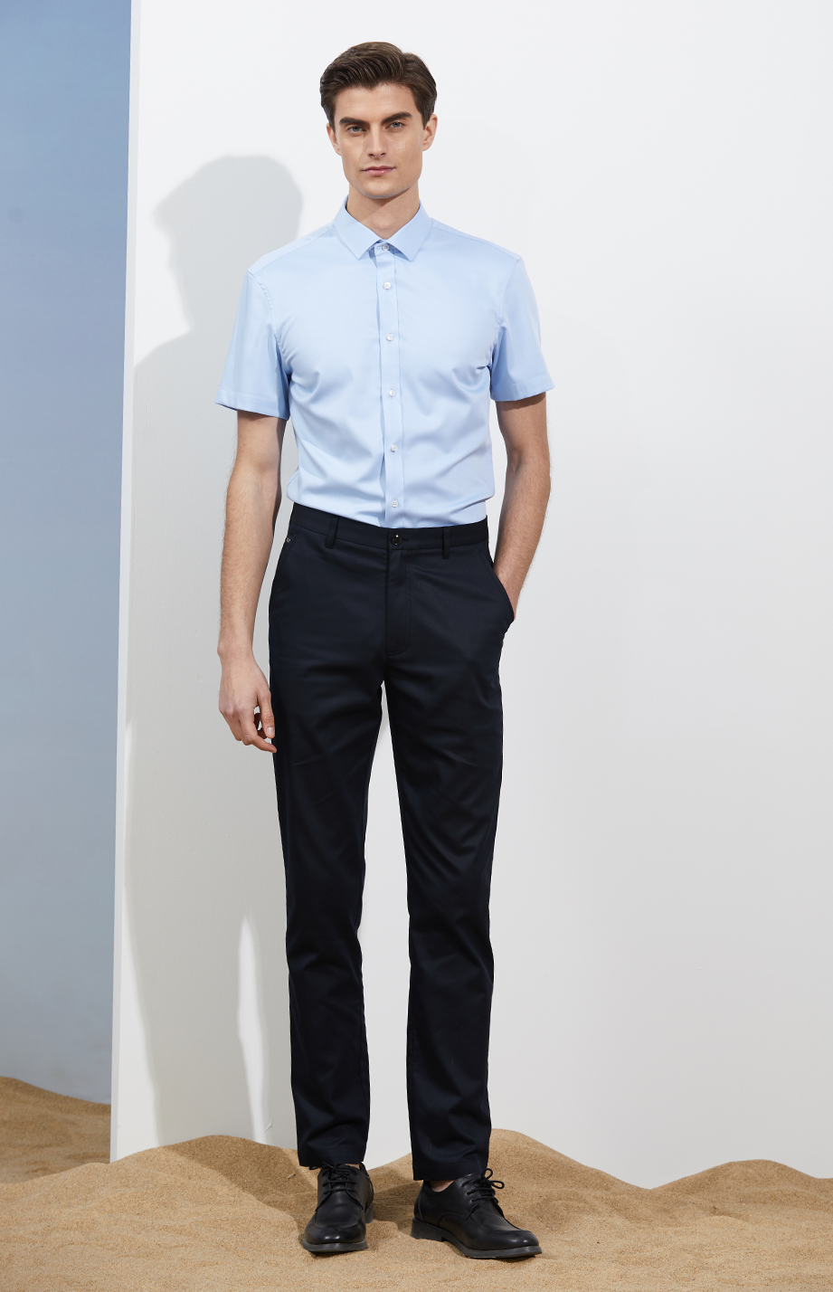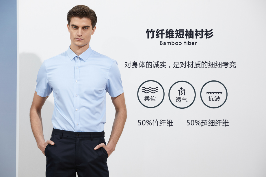 | 款名: | 浅蓝色小方领竹纤维短袖衬衫 | |||