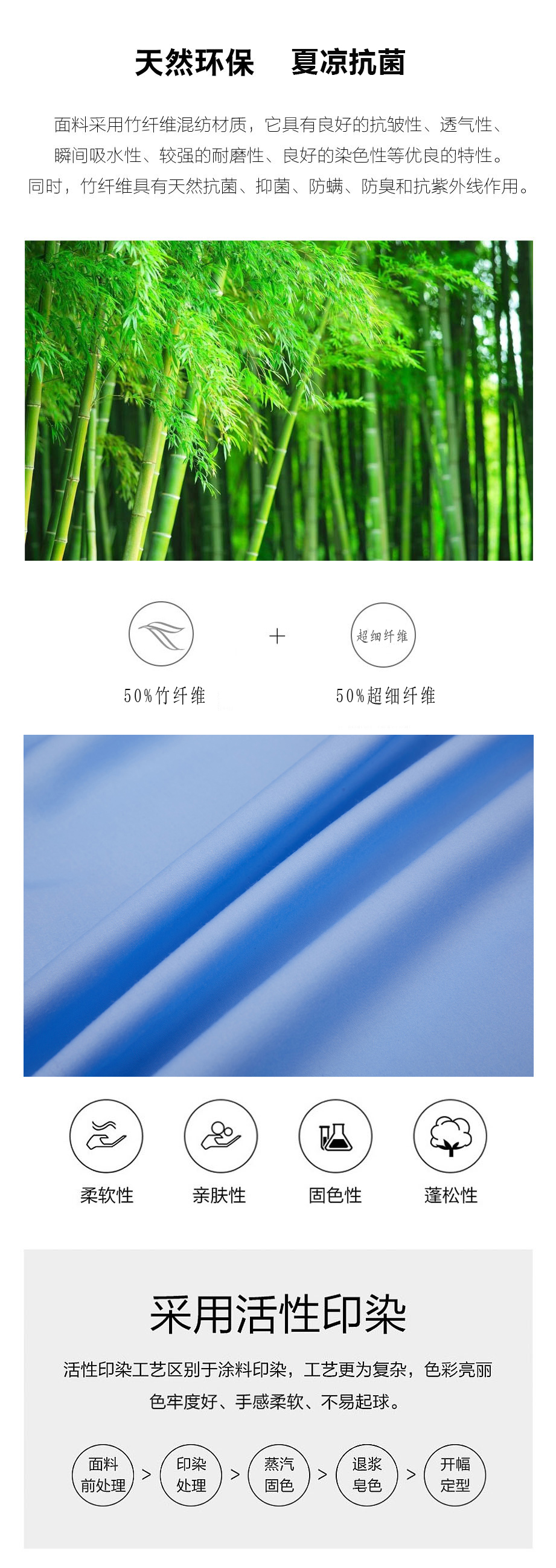 | 面料: | 50%竹纤维 50%超细纤维 | 柔软: |