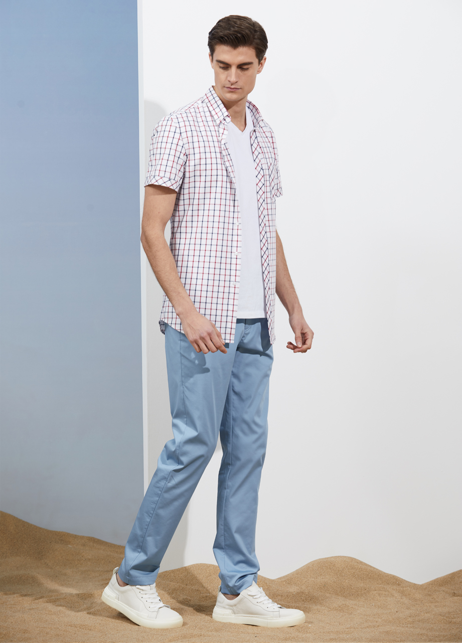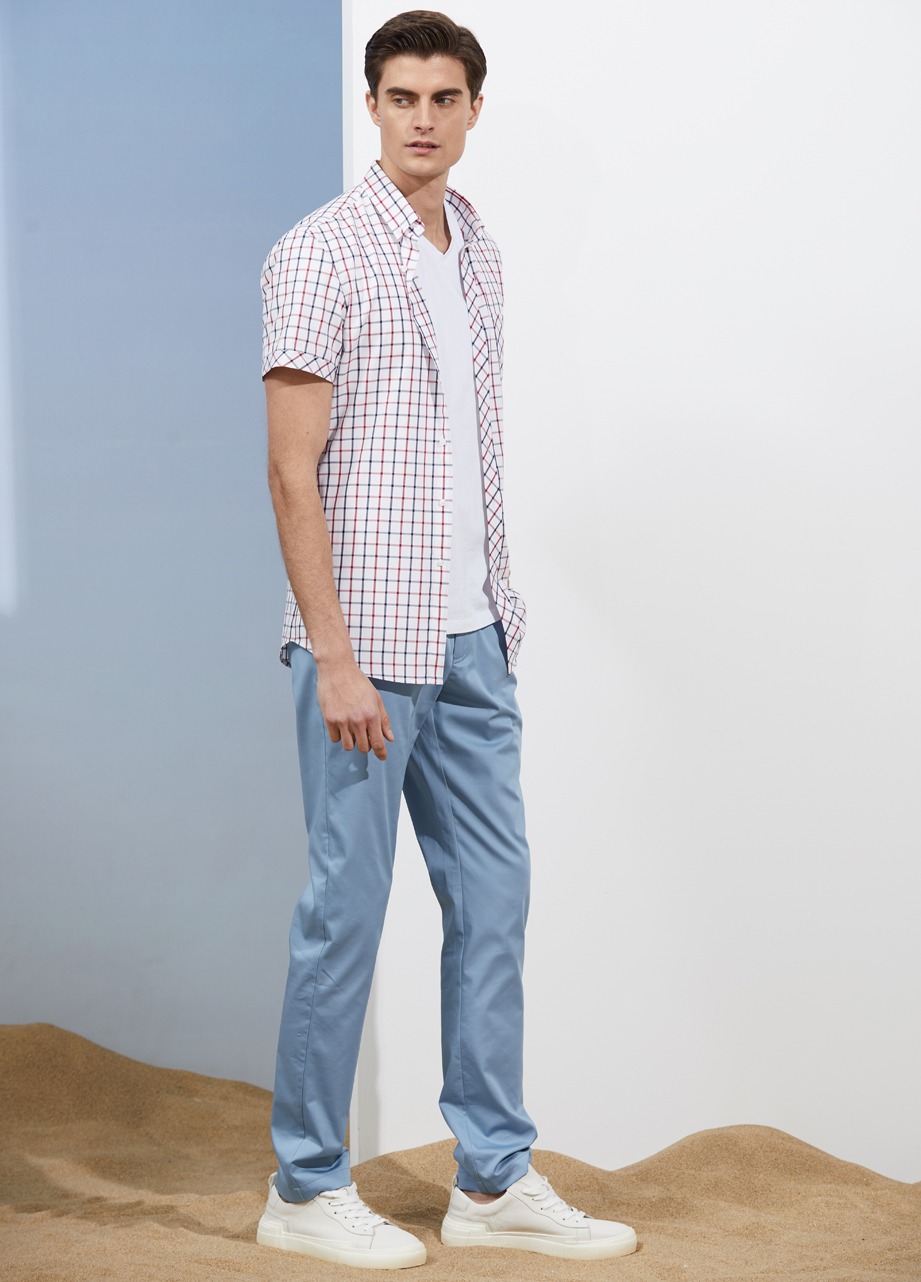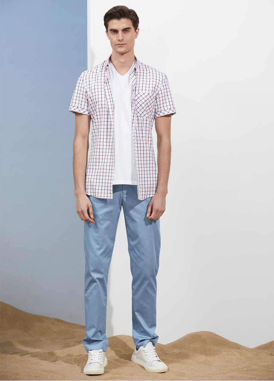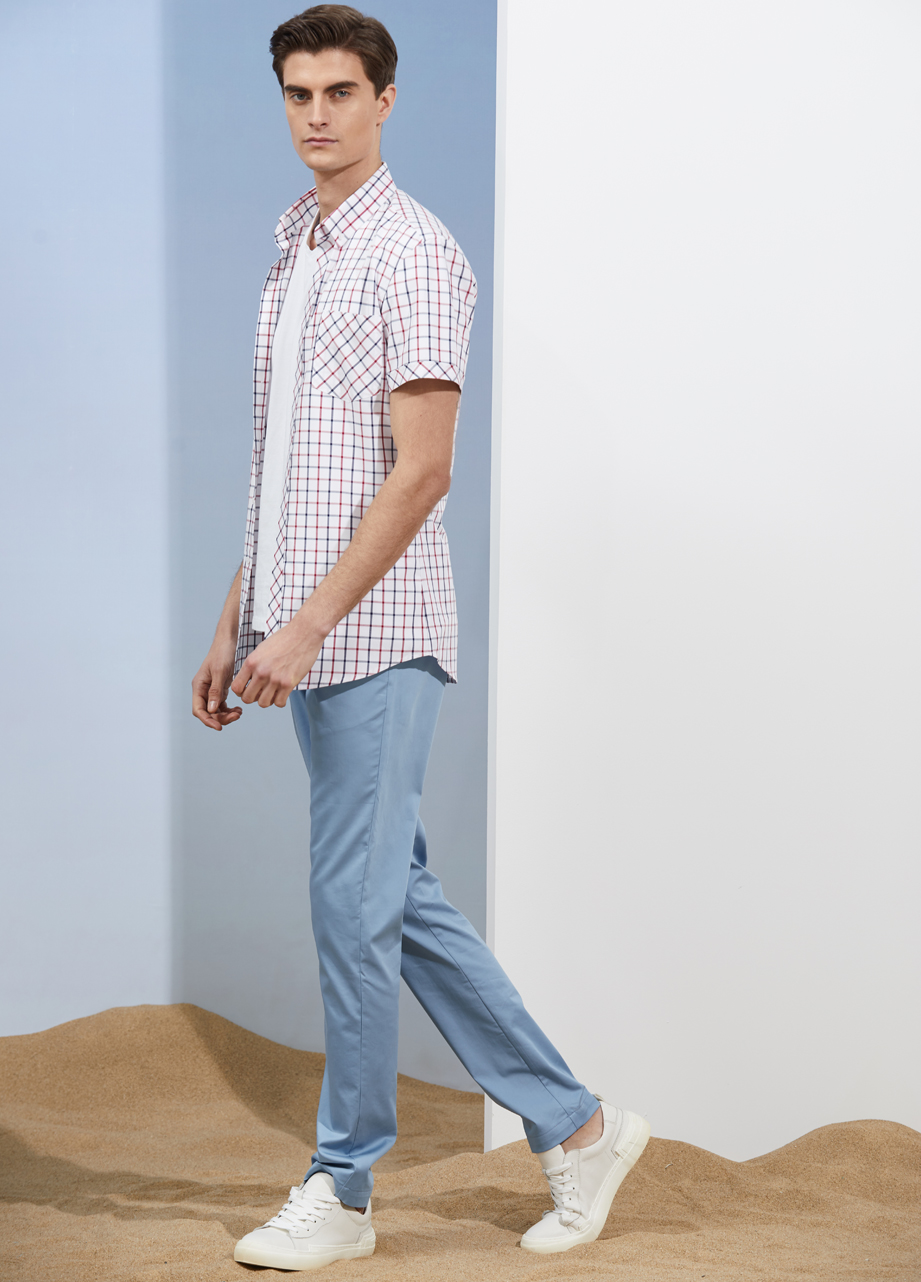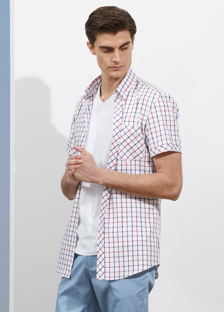 | 款名: | 白底红蓝条格竹纤维l短袖衬衫 | |||||