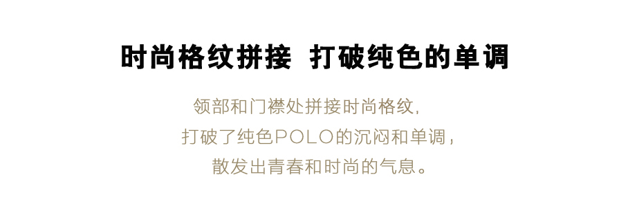 采用精致小方领型,领边缘拼色牙子装饰,门襟采用简约暗门襟,门襟内部拼色,打破纯色的单调,突显青春活力。