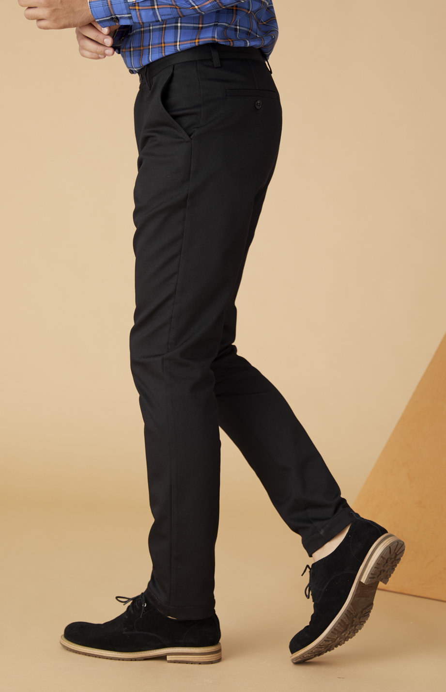裤口压单明线,简洁利落,裤子内里起绒,秋冬季更有暖感。