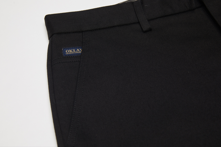 | 款名: | 黑色棉聚酯纤维混纺加厚抗皱微弹休闲裤 | |||
