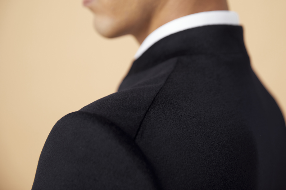 肩部借量的设计,肩部线条更符合国人穿着标准,舒适挺括。