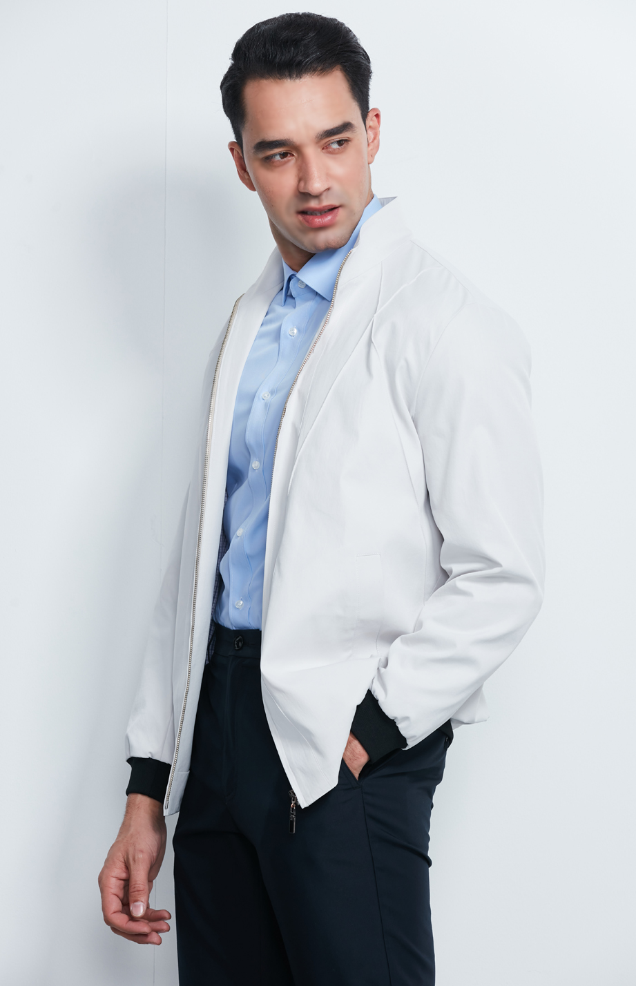 | 款名: | 米白色速干涤纶立领茄克 | |||