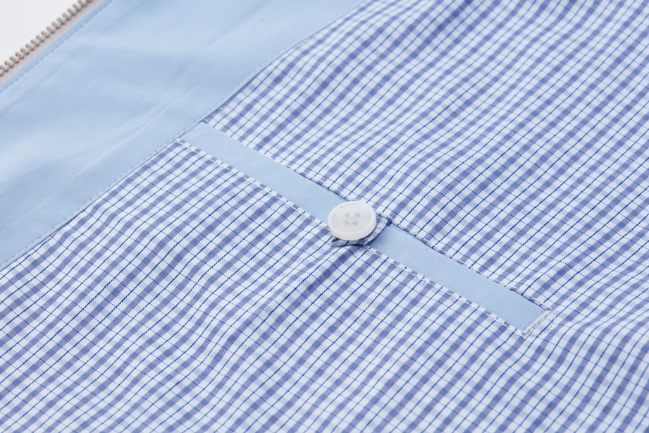 右侧一字挖袋加扣内兜,精致、简洁、实用。