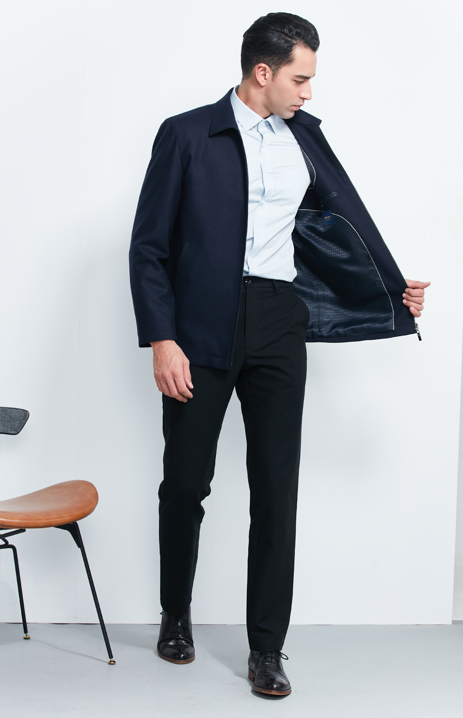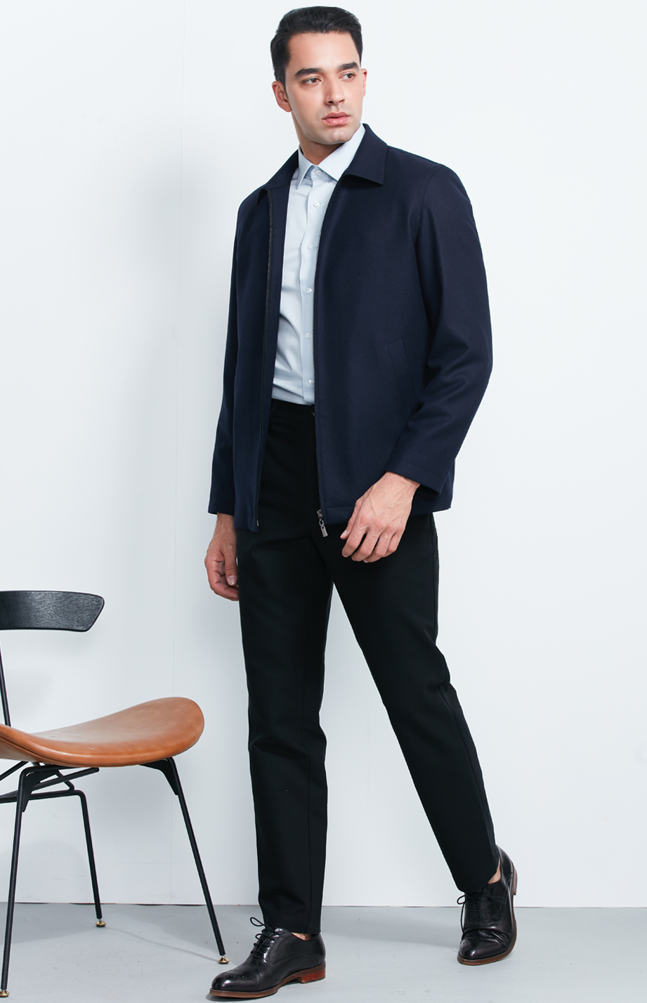 | 款名: | 藏蓝色进口羊毛翻领商务茄克 | |||