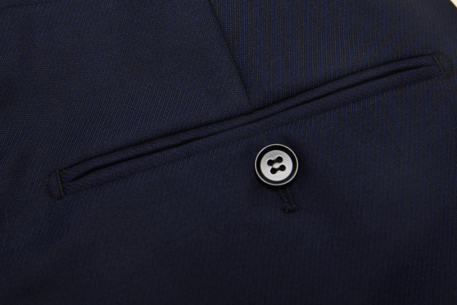 平整精细后双开线口袋,一次开机形成上下唇精美纹和,简约大气。