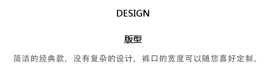 直筒裤口简单利落,可以根据您的喜好与要求调节裤口尺寸。