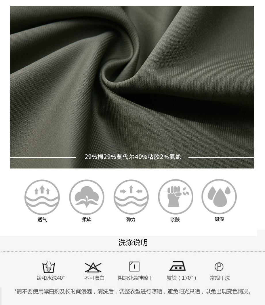 | 面料: | 29%棉 29%莫代尔40%粘胶 2%氨纶 | |||