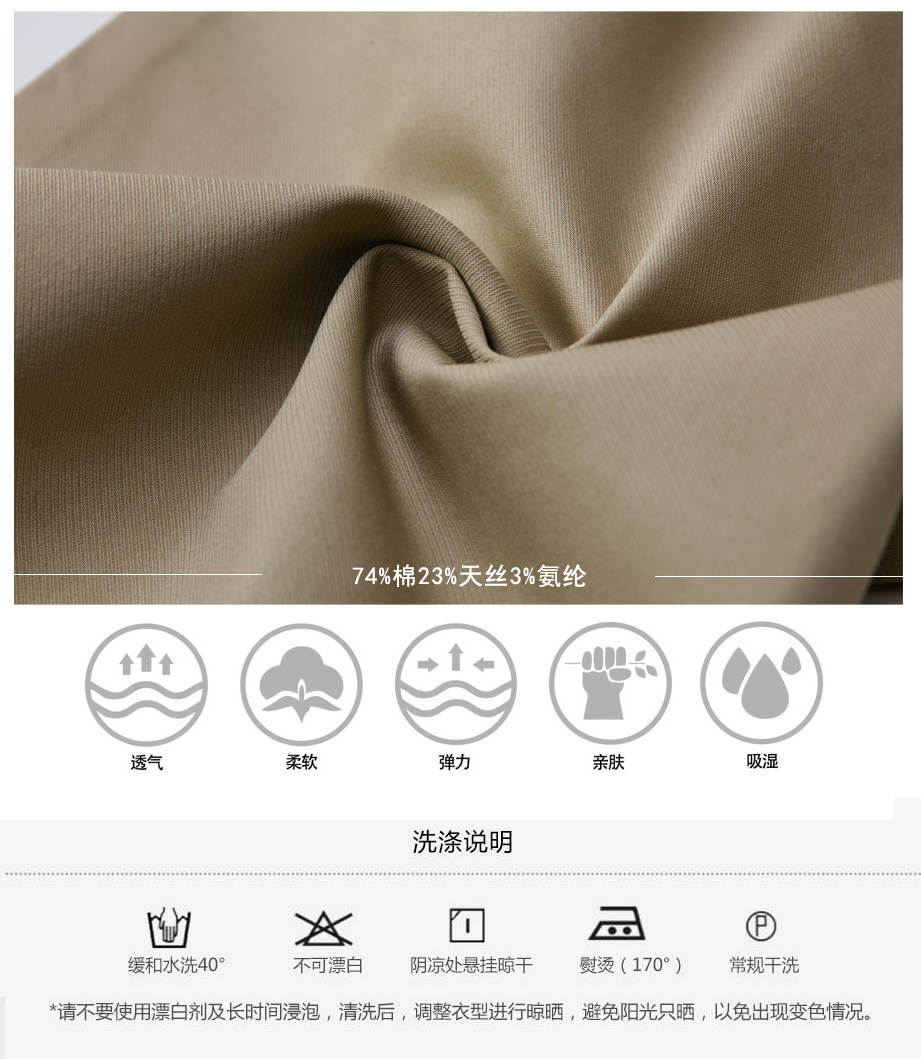 | 款名: | 浅卡其天丝棉混纺微弹春夏秋休闲裤 | |||