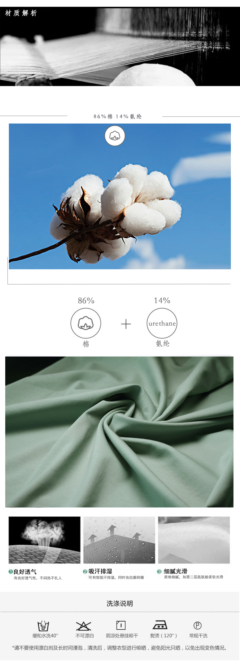 | 面料: | 86%棉14%氨纶 | 柔软: |