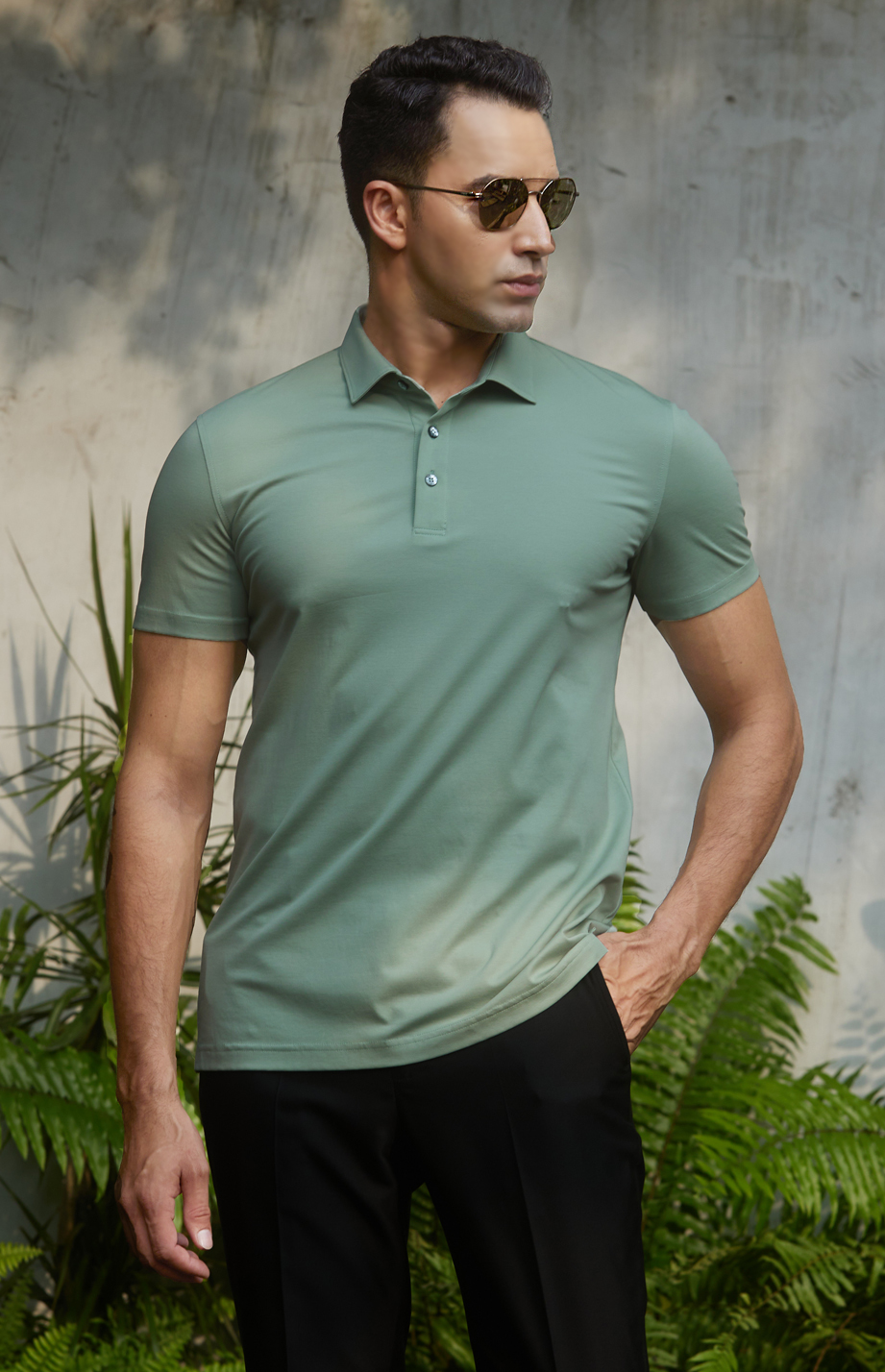 | 款名: | 浅绿高纱支丝光棉夏季休闲短袖POLO | |||