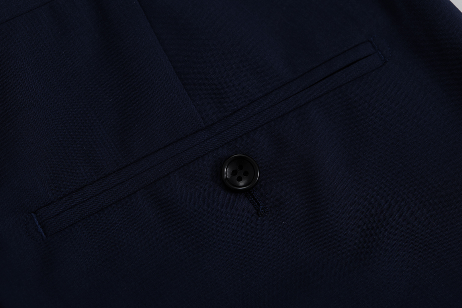 平整精细后双开线口袋,一次开机形成上下唇精美纹和,简约大气。