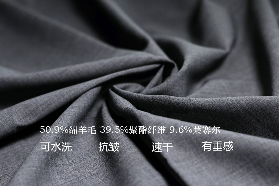 | 款名: | 灰色羊毛混纺可水洗抗皱速干夏季西裤 | |||||