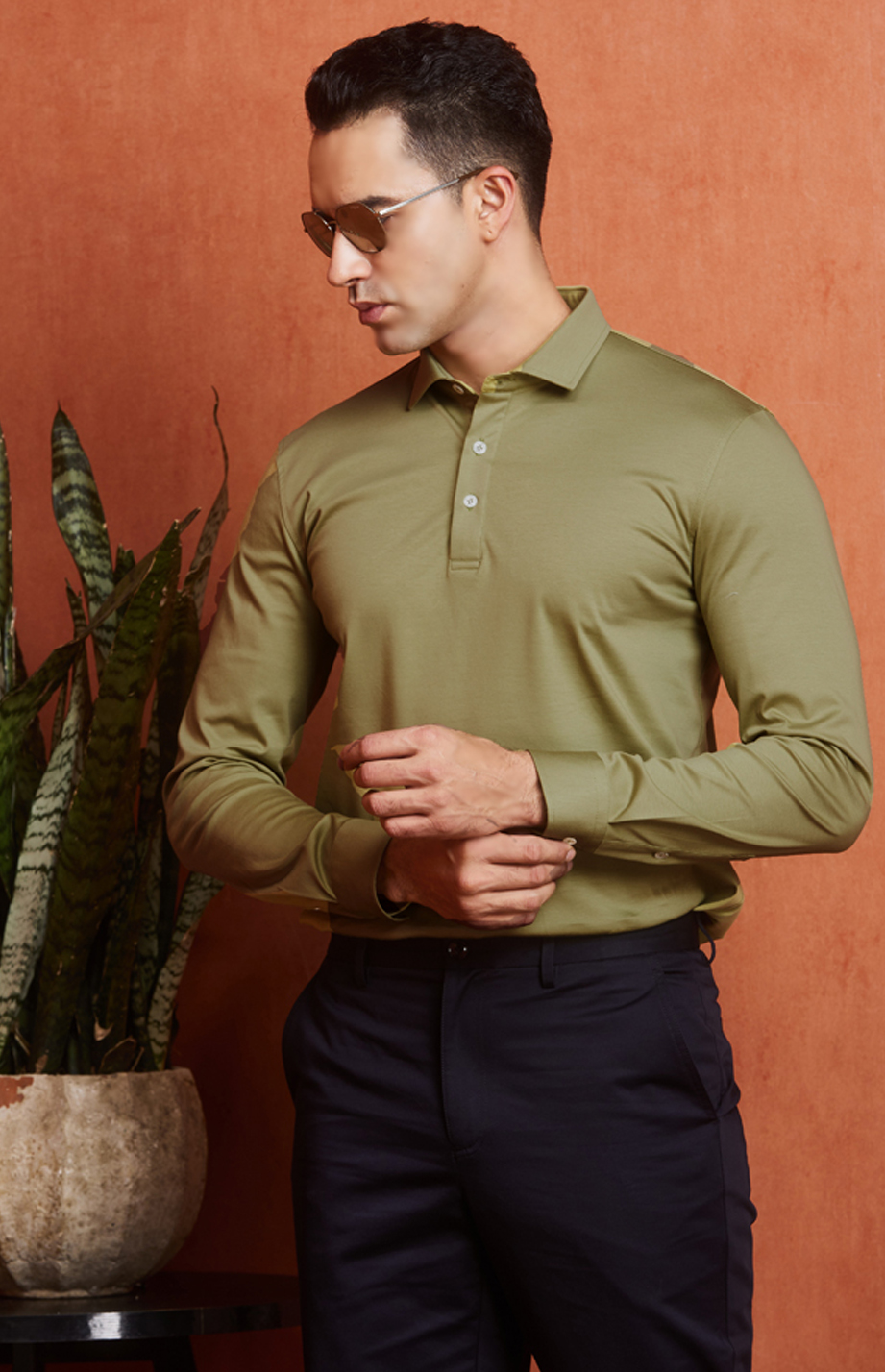 | 款名: | 苹果绿丝光长绒棉小方领长袖POLO | |||||