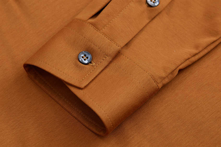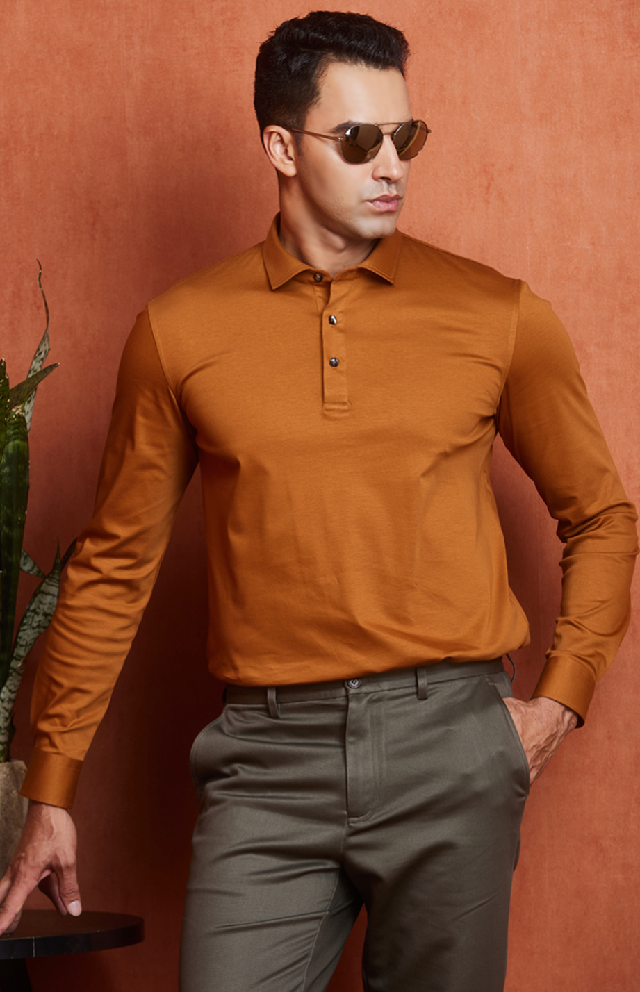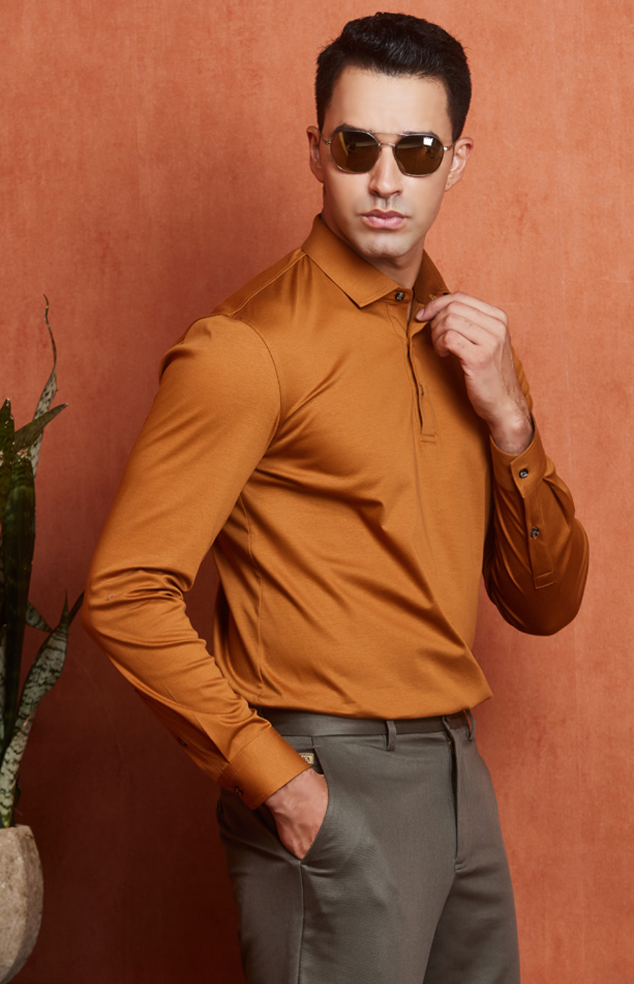 | 款名: | 焦糖色双面丝光长绒棉小方领长袖POLO | |||||