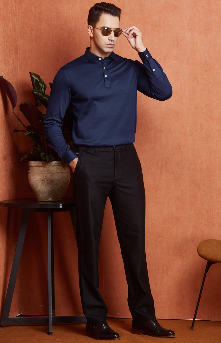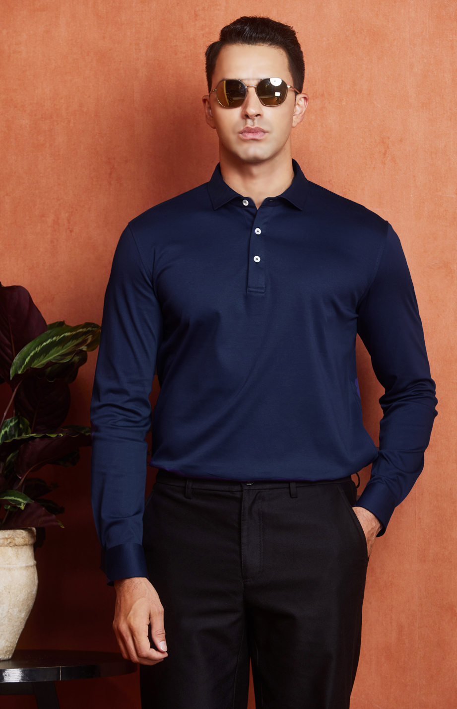 | 款名: | 蓝紫色双面丝光棉小方领长袖POLO | |||||