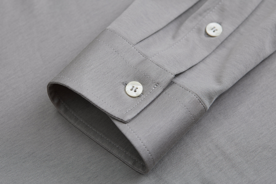 | 款名: | 浅灰绿色双面丝光长绒棉小方领长袖POLO | |||||