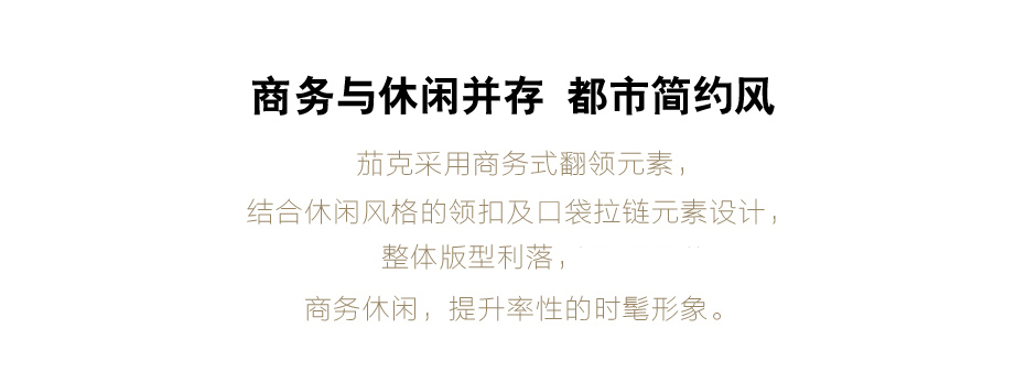 采用经典外翻领,结合拉链设计,美观与舒适兼顾,简洁大气。