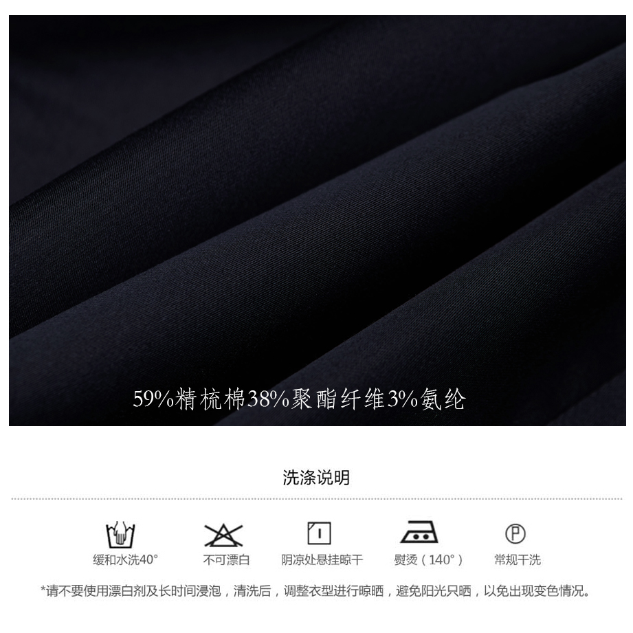 | 面料: | 59%精梳棉38%聚酯纤维3%氨纶 | |||