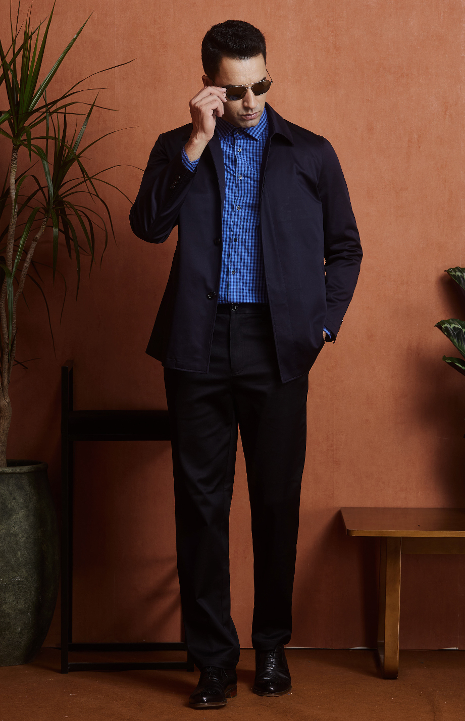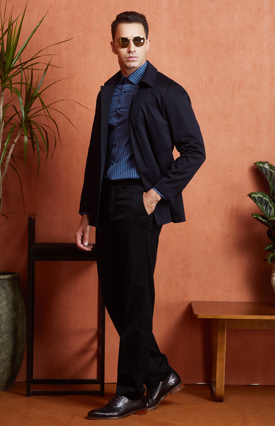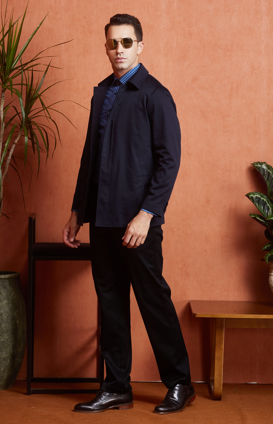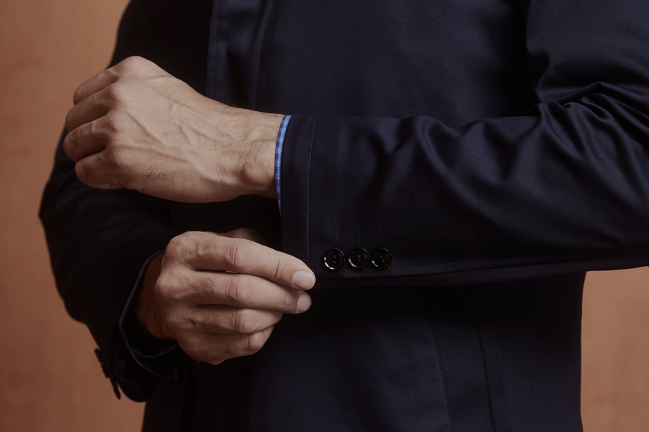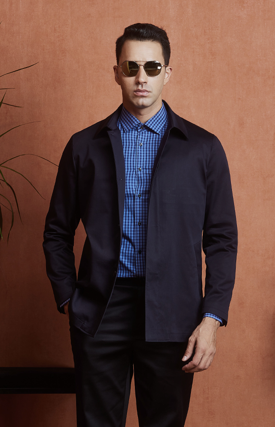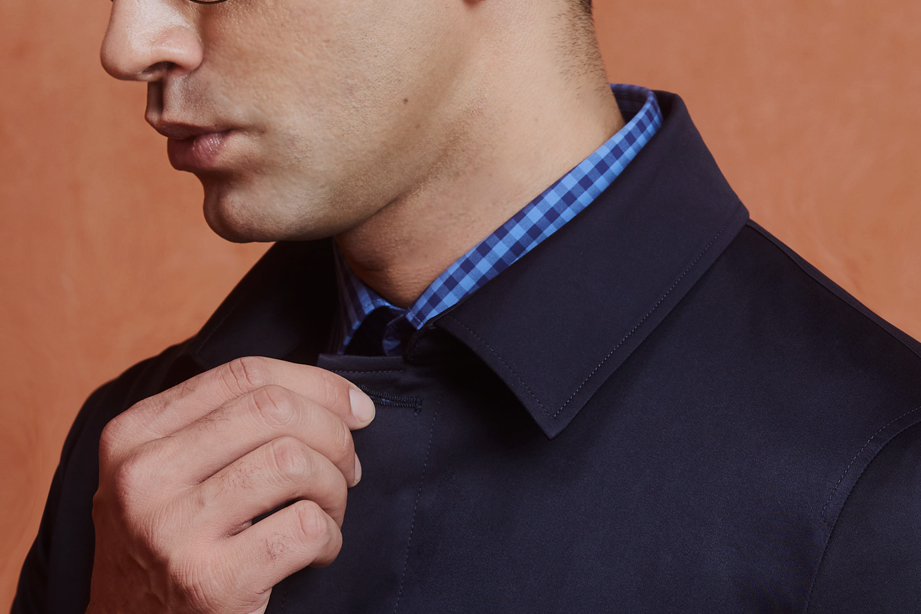 | 款名: | 藏蓝色精梳棉聚酯纤维混纺微弹翻领商务休闲茄克 | |||