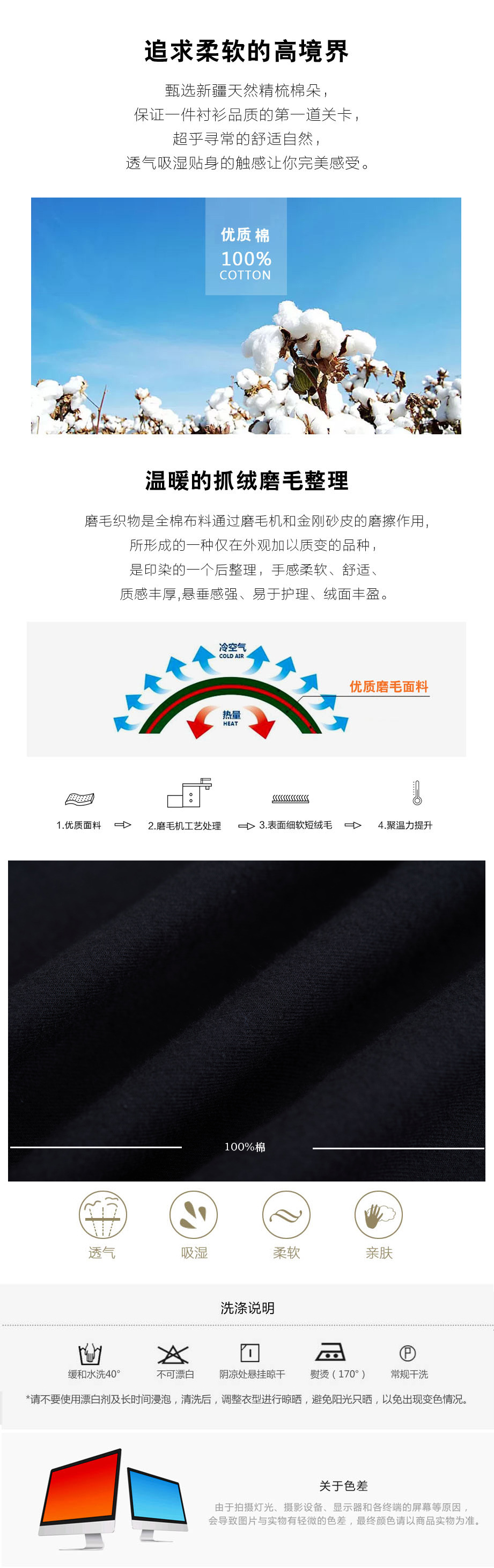 经典明门襟设计;专用定制纽扣,精致耐用,车线精密走针,不易脱落。