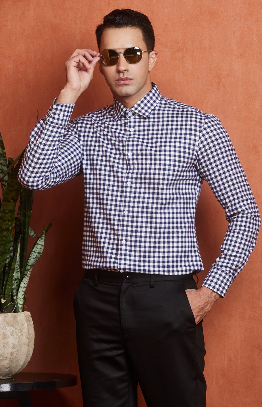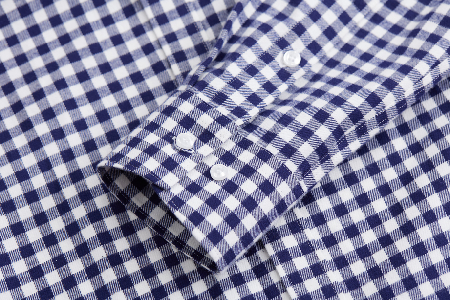 | 款名: | 蓝白格精梳棉磨毛小方领长袖衬衫 | |||