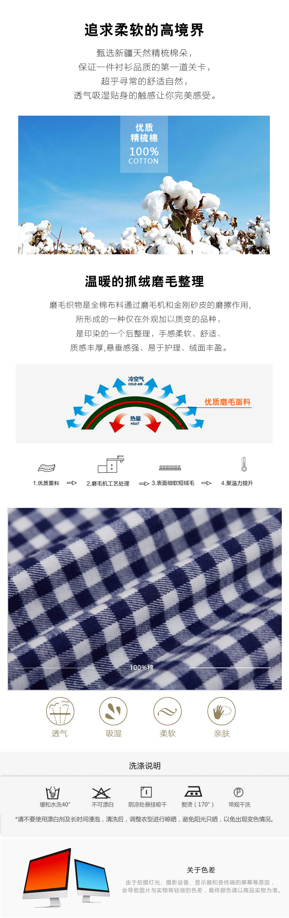 | 款名: | 蓝白格精梳棉磨毛小方领长袖衬衫 | |||||