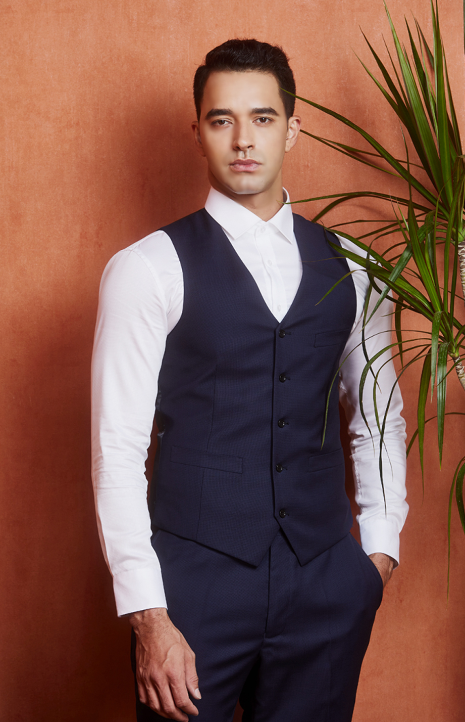 | 款名: | 海军蓝英国进口纯毛鸟眼纹西服套装马甲 | |||