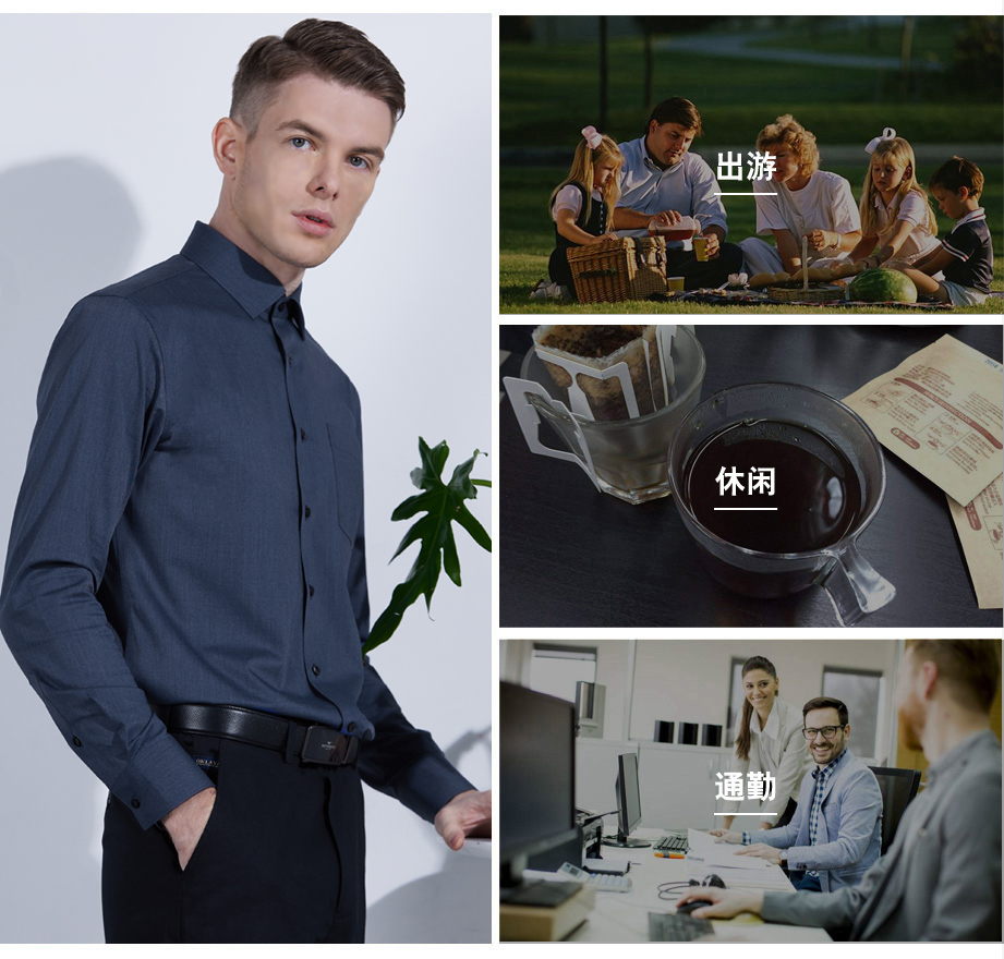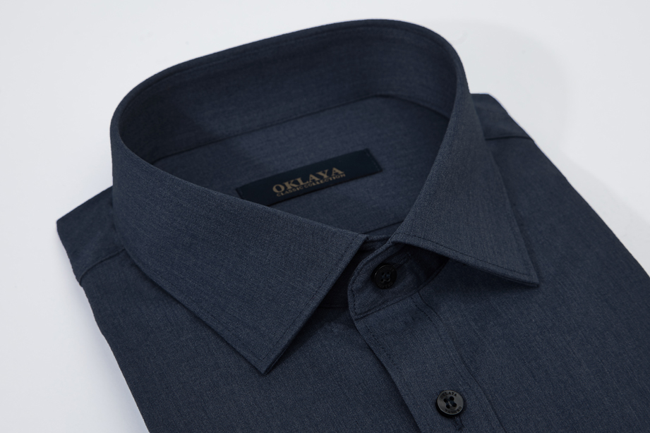 | 款名: | 深蓝仿牛仔竹纤维混纺微弹小方领长袖衬衫 | |||||
