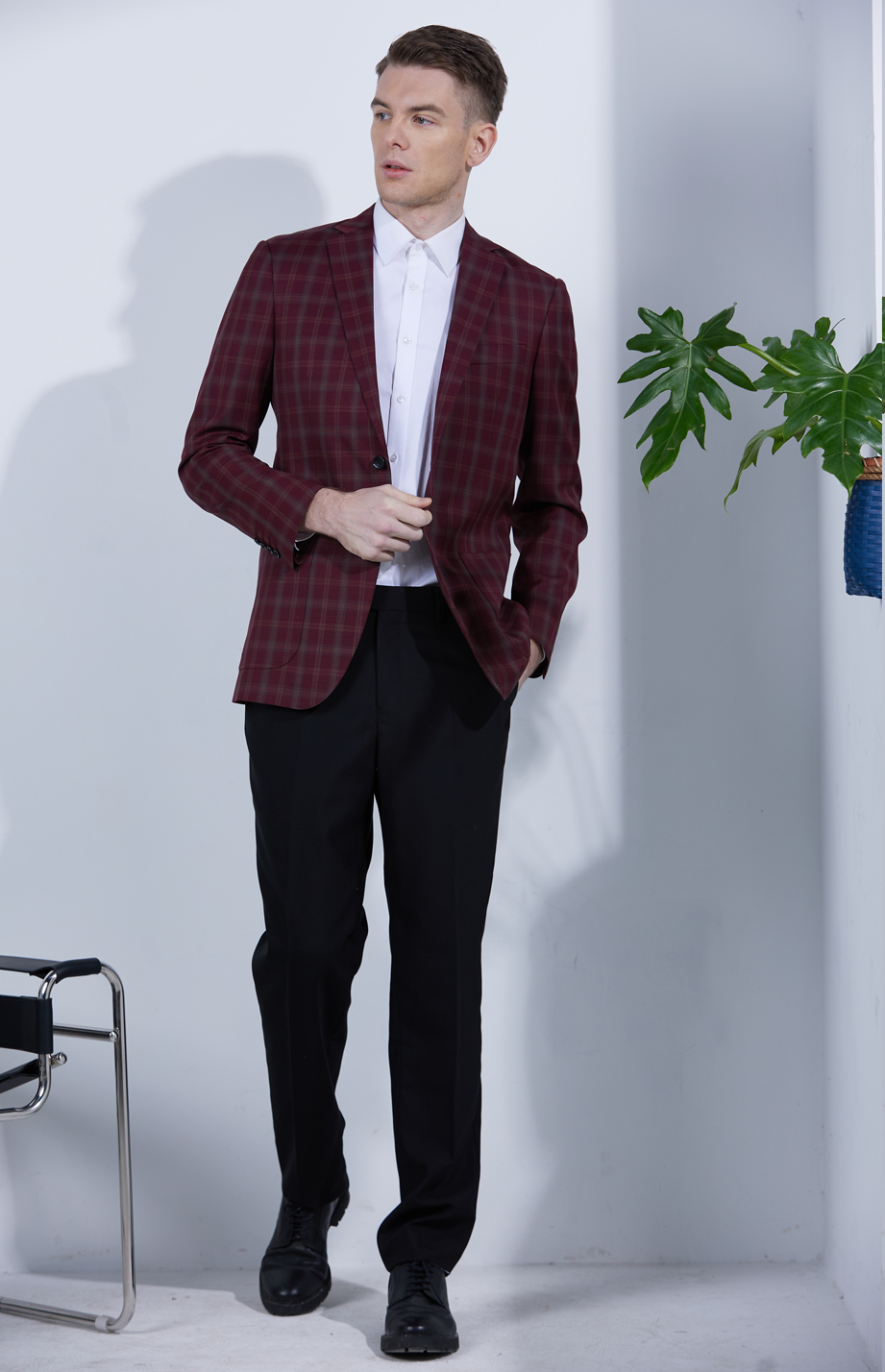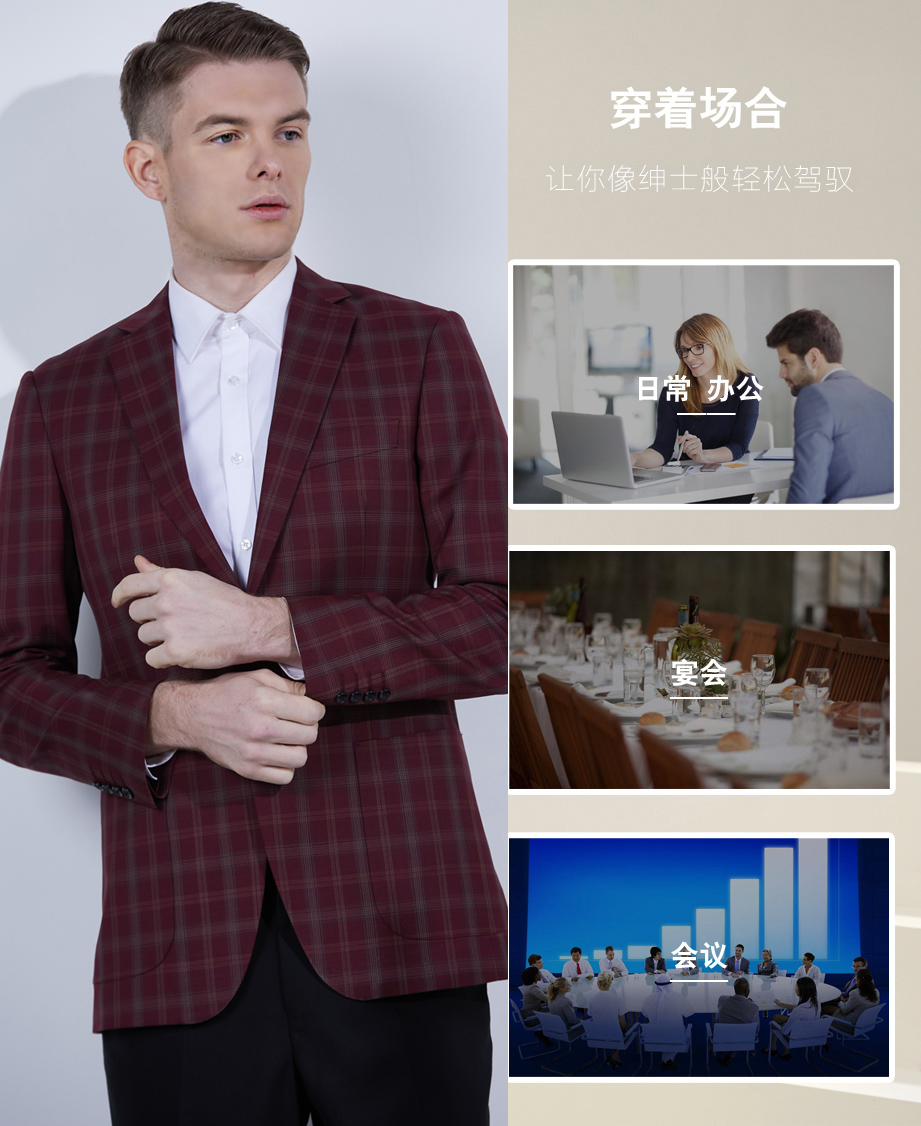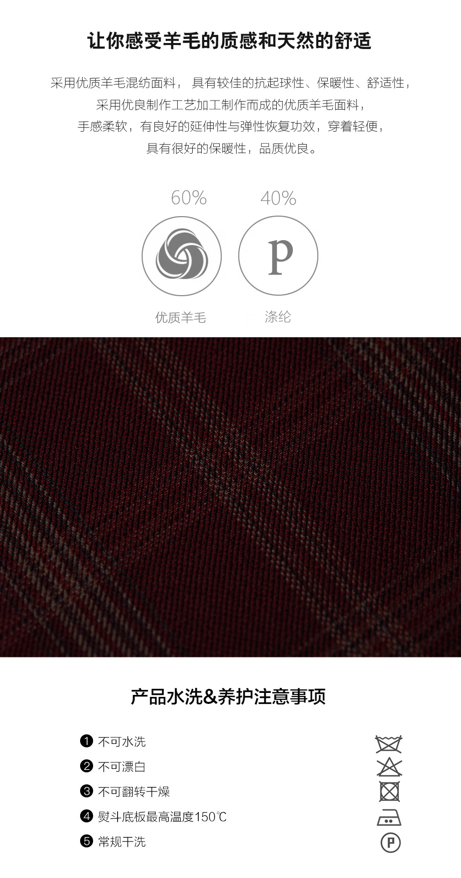 | 款名: | 红底棕格羊毛涤纶混纺商务休闲单西 | |||