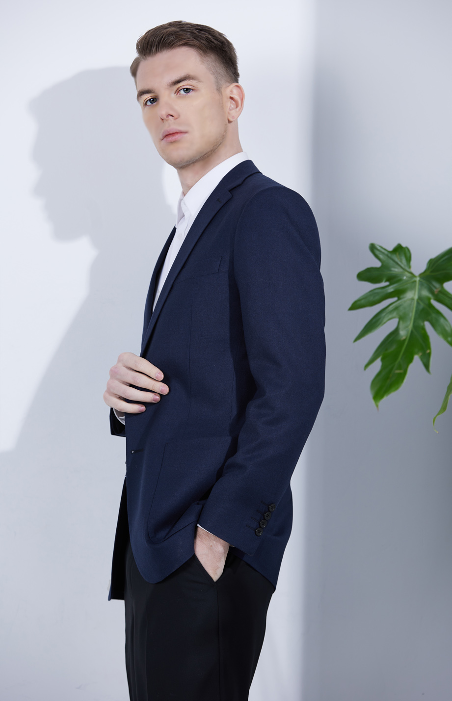 | 款名: | 海军蓝毛麻混纺平驳头商务休闲单西 | |||||