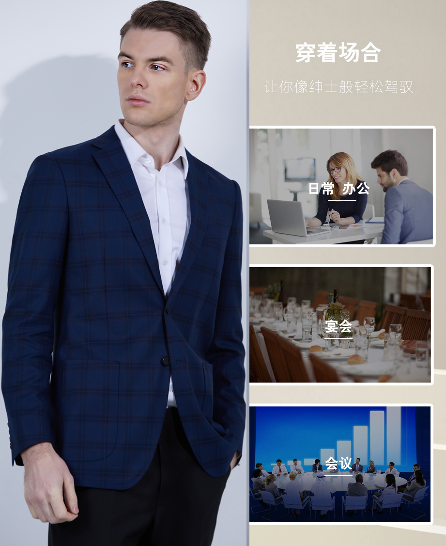 | 款名: | 海军蓝底红蓝细格毛涤天丝混纺微弹平驳头商务休闲单西 | |||