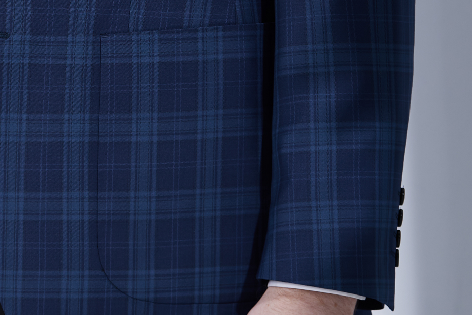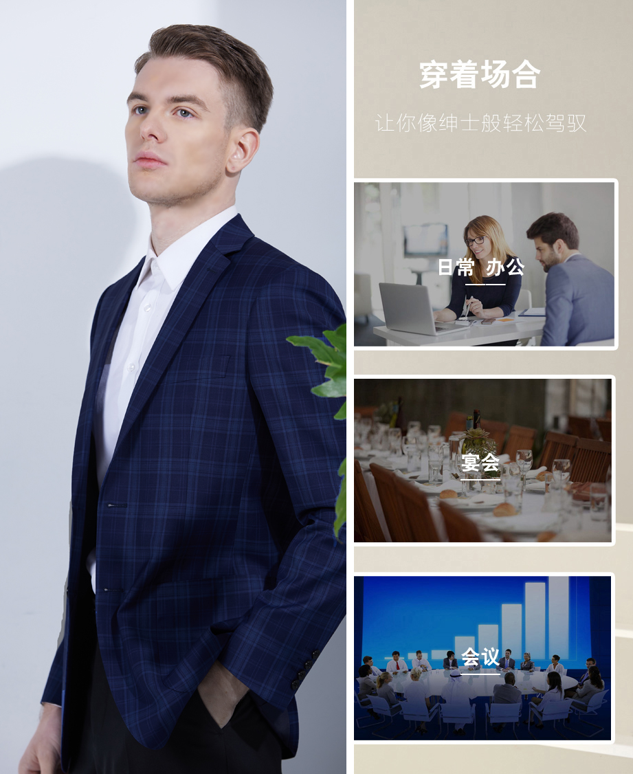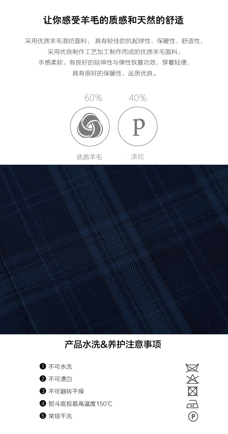 | 款名: | 深蓝底中蓝格毛涤混纺平驳头商务休闲单西 | |||||
