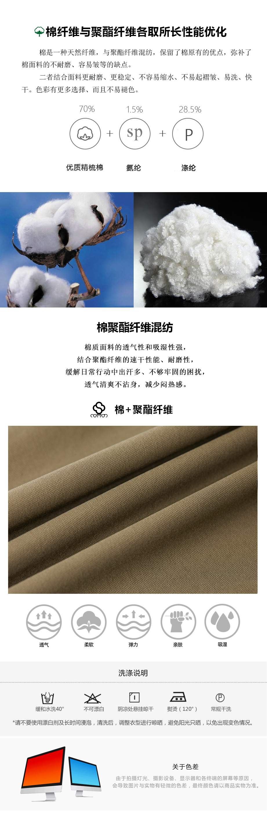 | 面料: | 70%棉28.5%涤纶1.5%氨纶 | 柔软: |