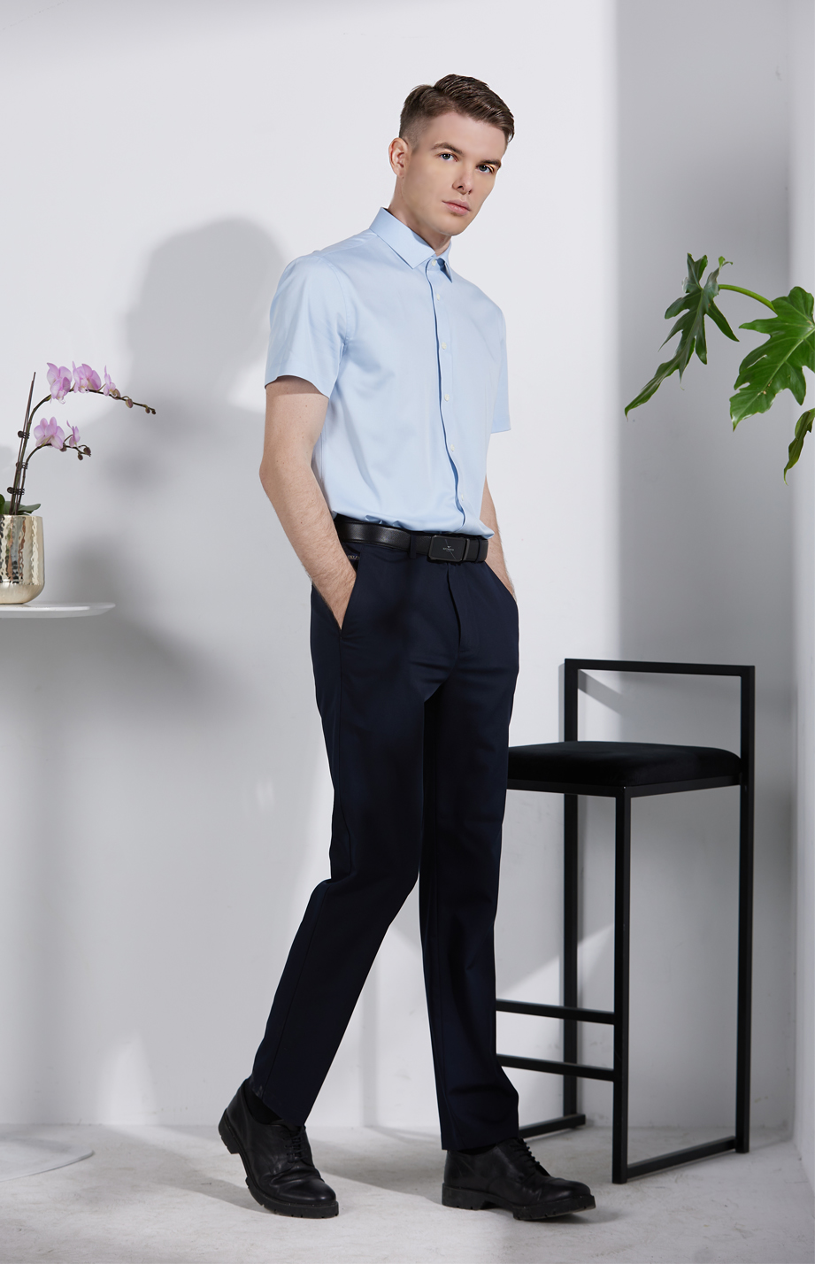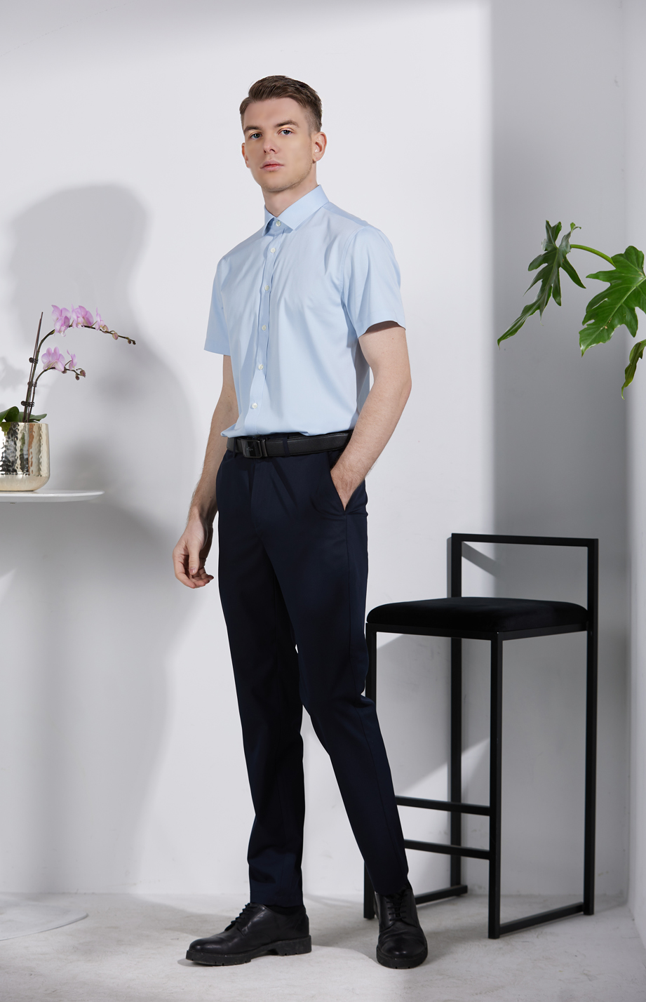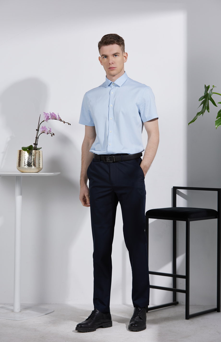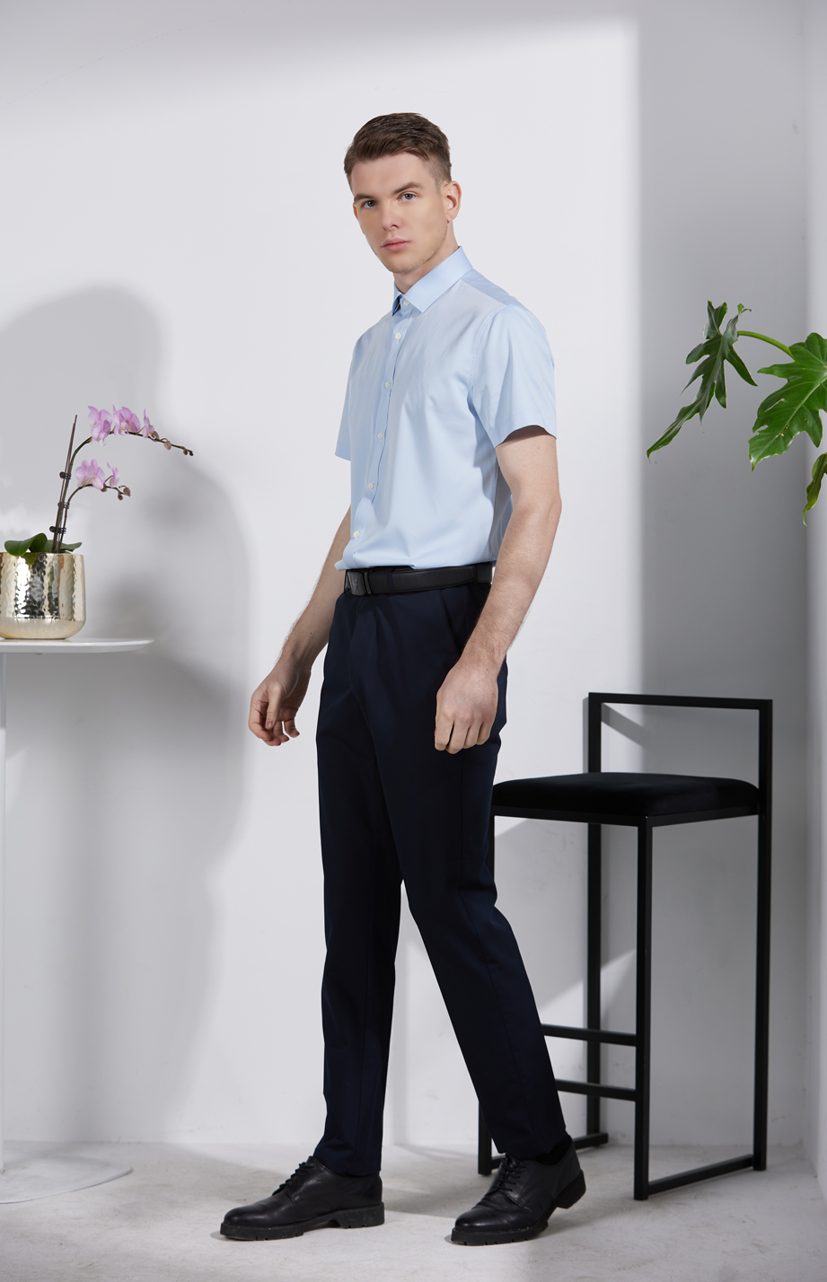 | 款名: | 浅蓝色粘胶(竹纤维)桑蚕丝混纺微弹短袖衬衫 | |||||