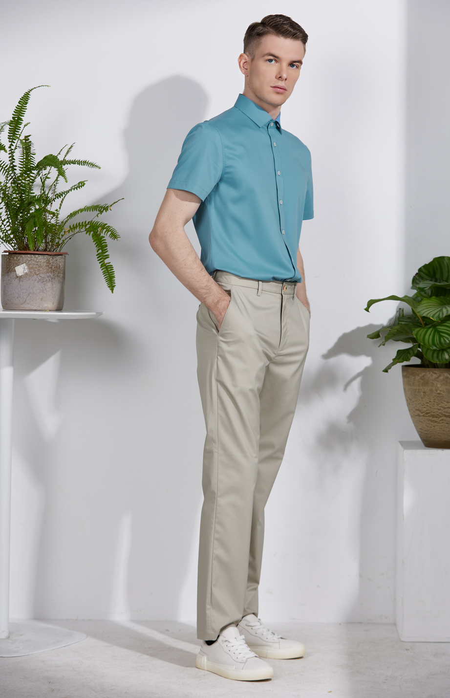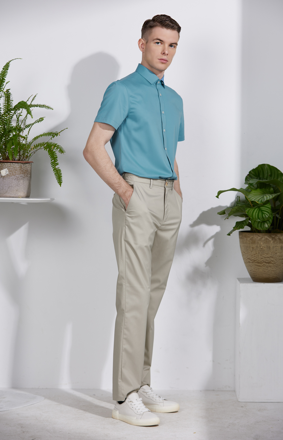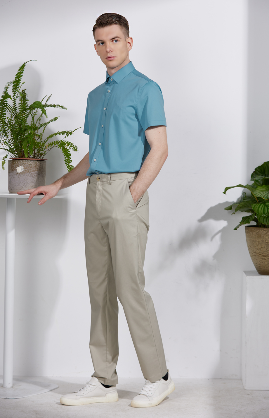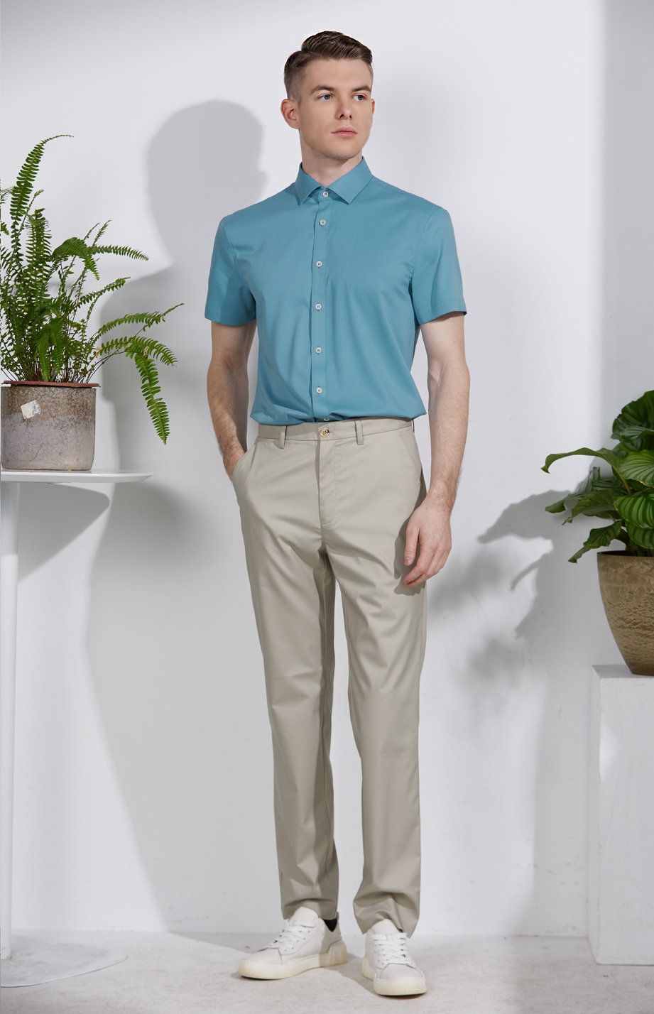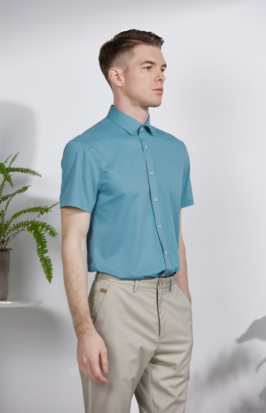 | 款名: | 湖蓝色竹纤维桑蚕丝混纺微弹短袖衬衫 | |||
