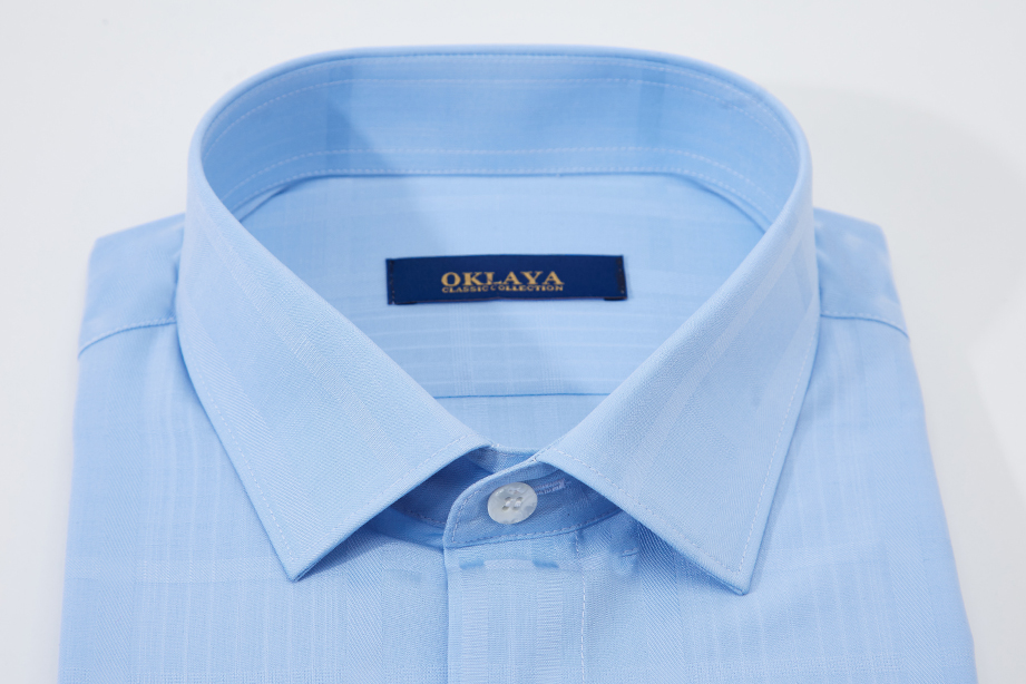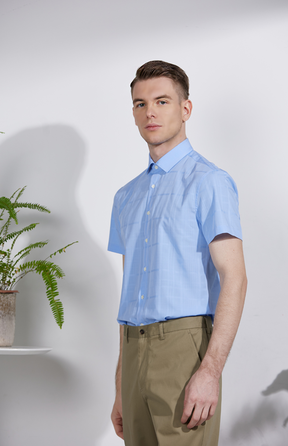 | 款名: | 浅蓝竹纤维聚酯纤维混纺提花大格短袖衬衫 | |||
