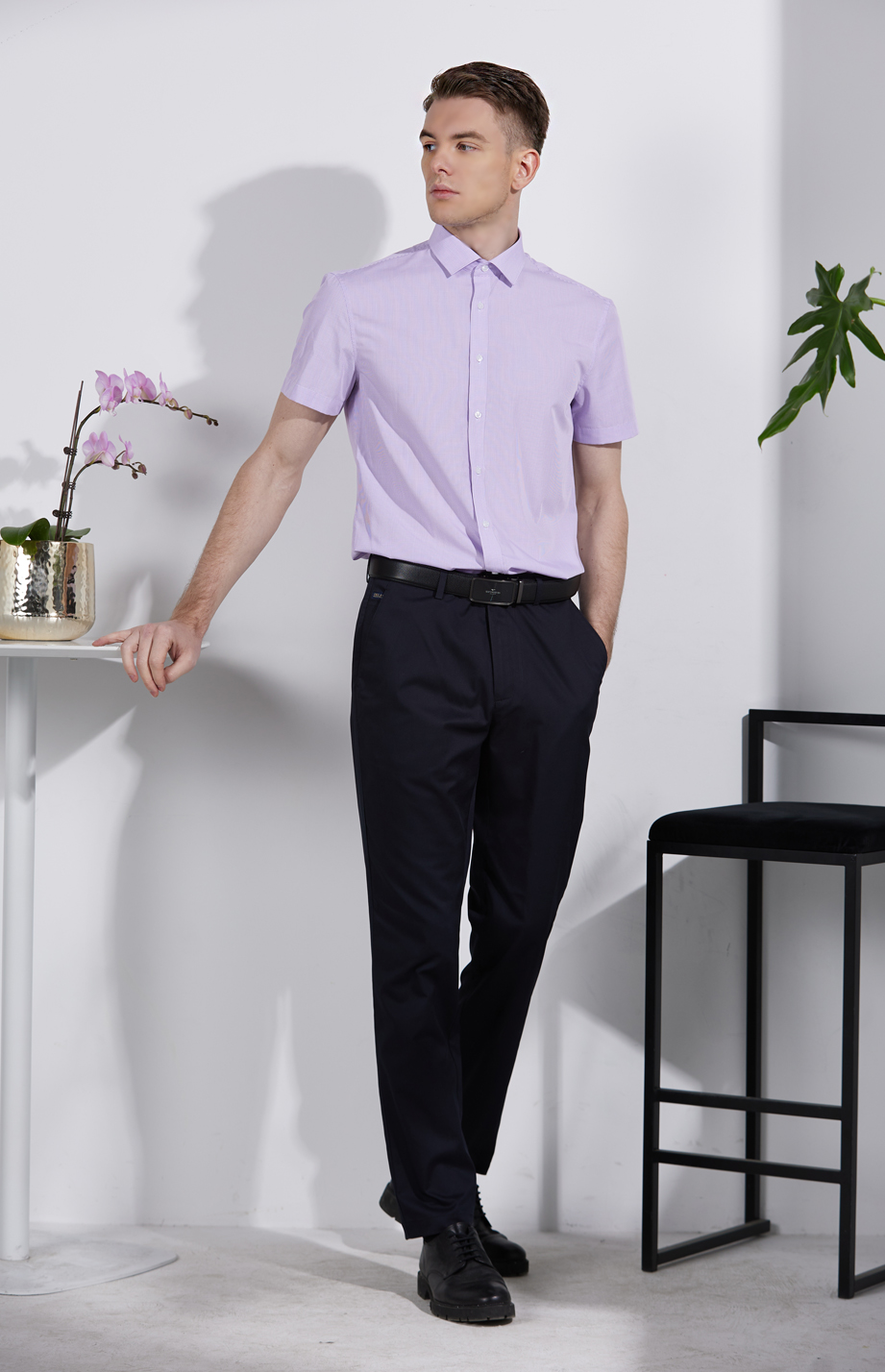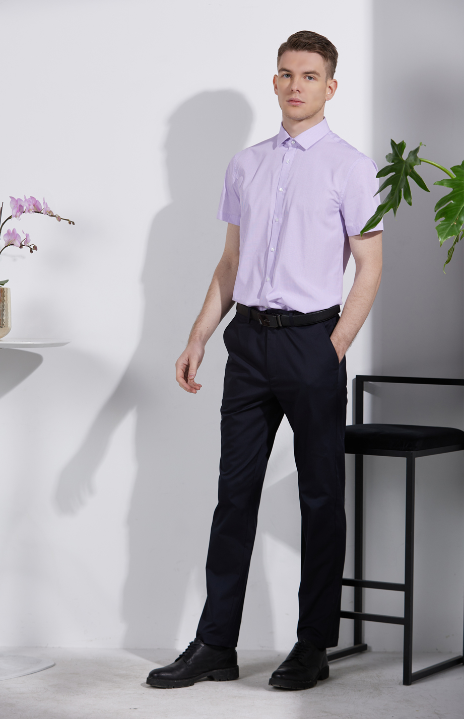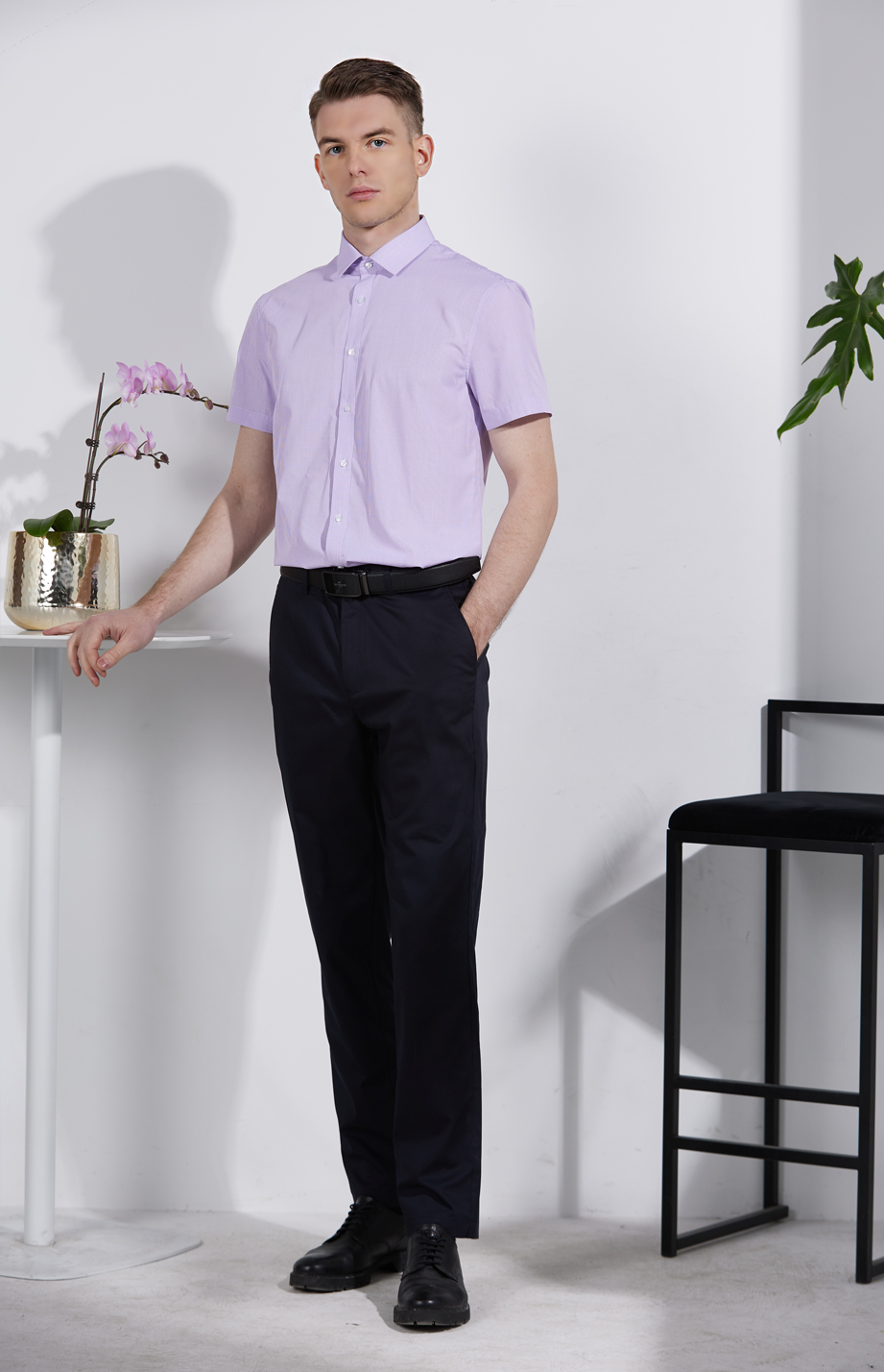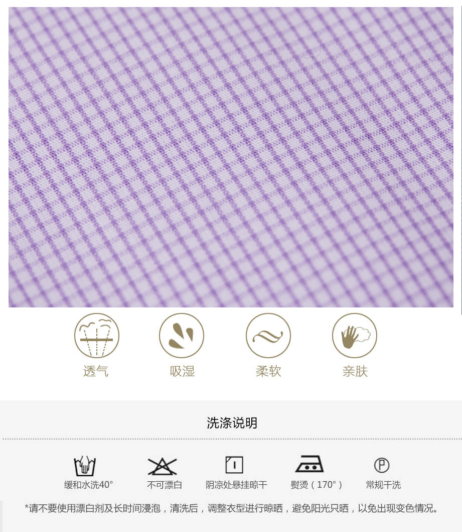 | 款名: | 白底紫色小格竹纤维聚酯纤维混纺短袖衬衫 | |||
