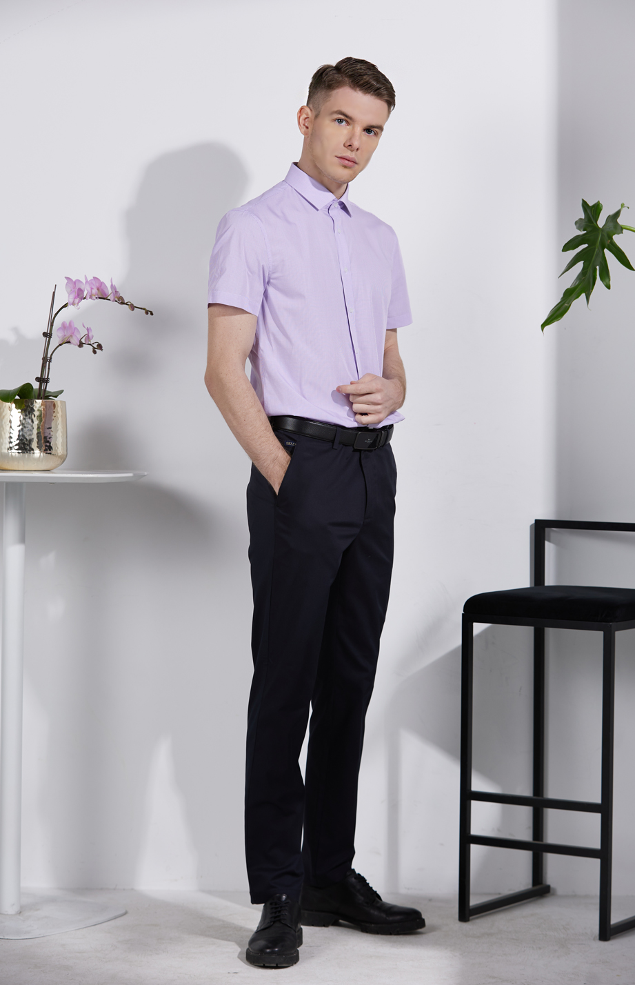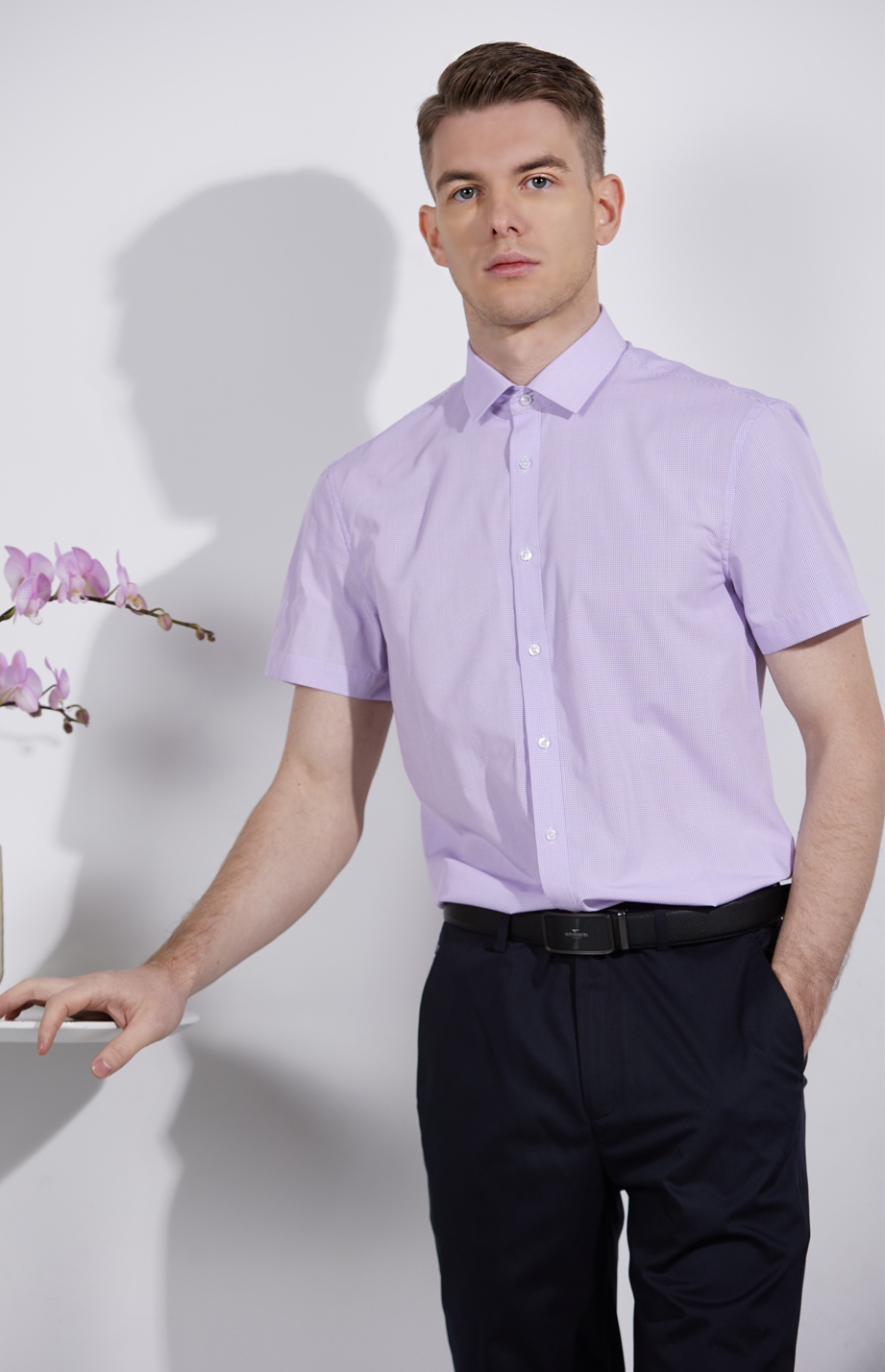 | 款名: | 白底紫色小格竹纤维聚酯纤维混纺短袖衬衫 | |||||