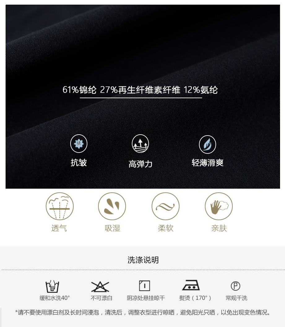 | 款名: | 藏青色再生纤维素纤维锦纶混纺高弹春夏秋款休闲裤 | |||