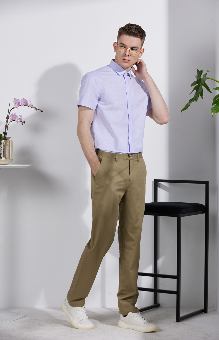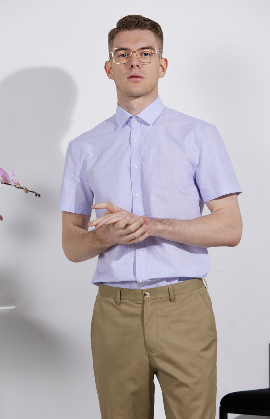 | 款名: | 浅紫色棉麻混纺商务休闲短袖衬衫 | |||